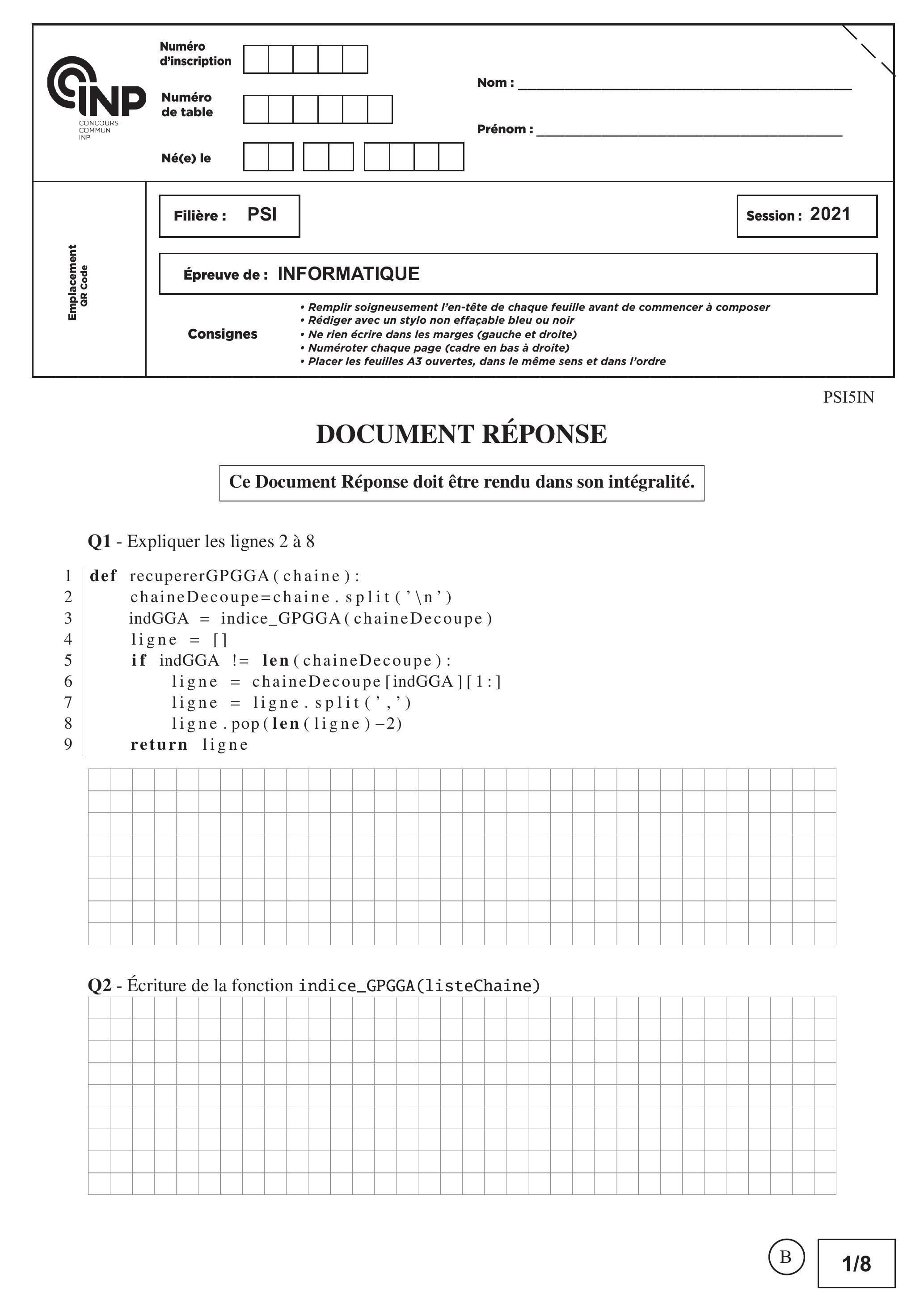 CCINP Informatique Commune PSI 2021 - Version Web LaTeX | WikiPrépa | WikiPrépa