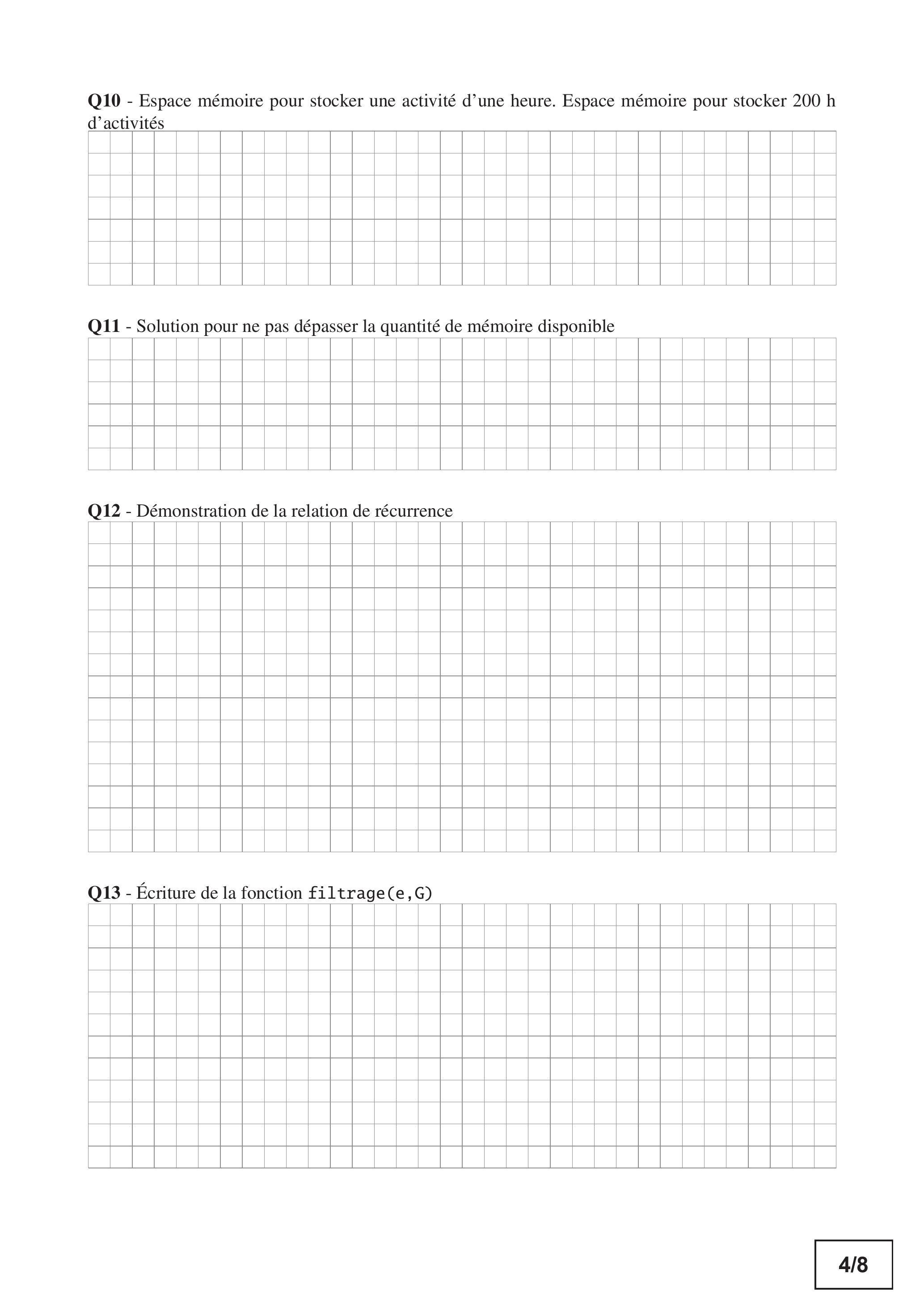 Q10 - Espace mémoire pour stocker une activité d'une heure. Espace mémoire pour stocker 200 h d'activités