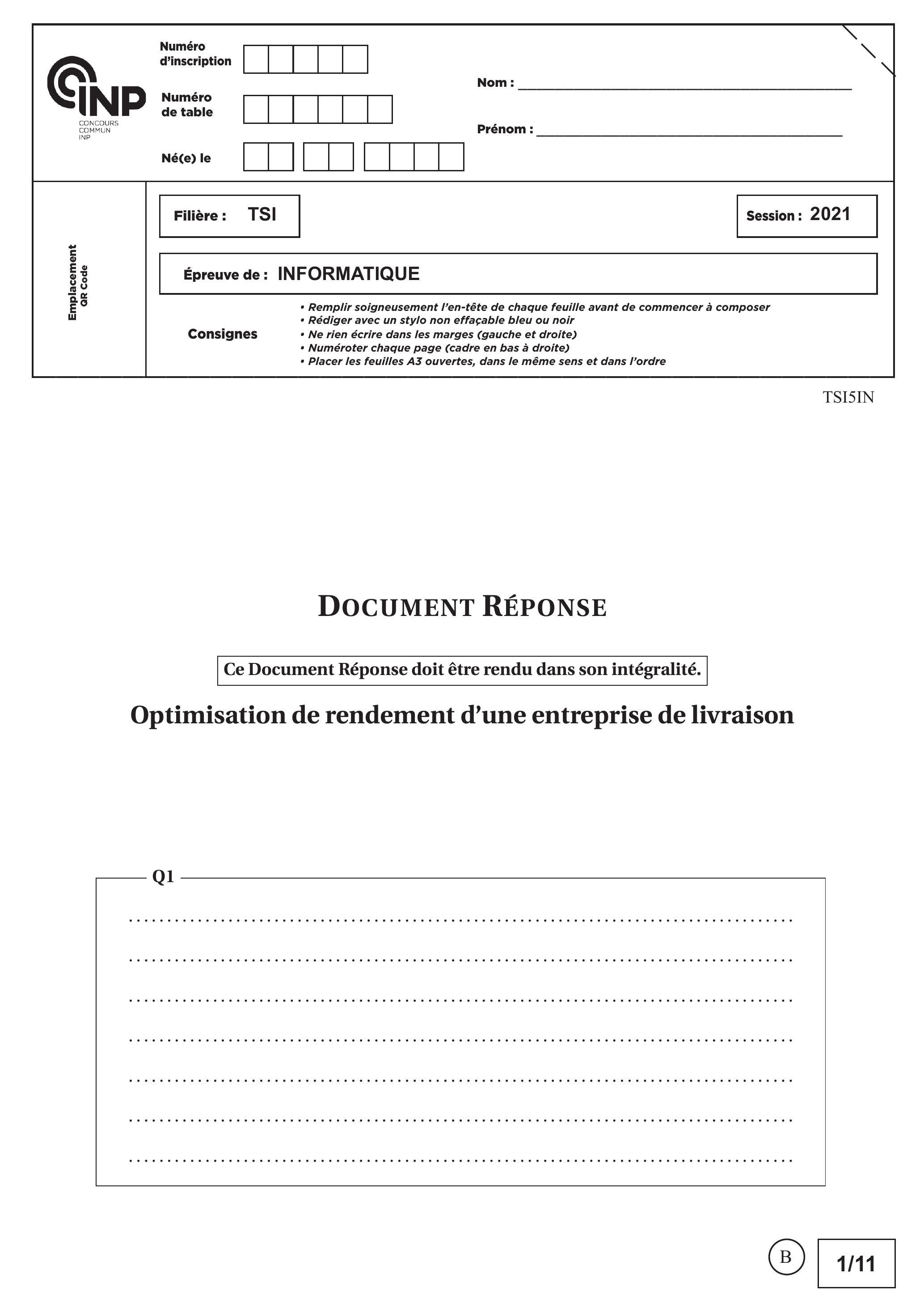 le Document Réponse : page 1 à page 11.
