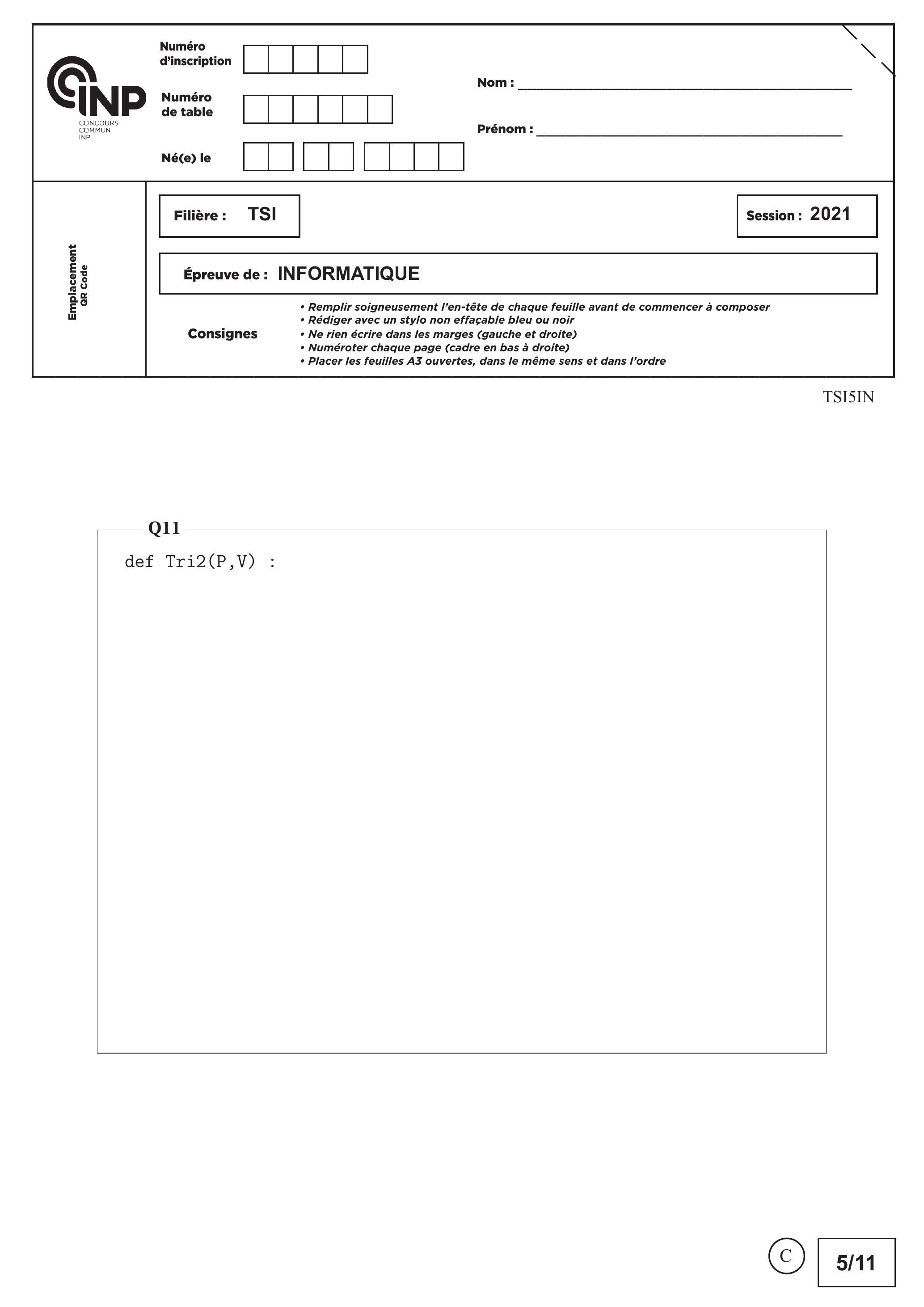 Q11. Écrire, à l'aide des fonctions Ratio et Inverse, une fonction Tri2 ayant pour arguments une liste de poids et une liste de valeurs associées à une liste de produits. Cette fonction renverra les listes de poids et de valeurs triées par ordre décroissant de la liste des ratios.