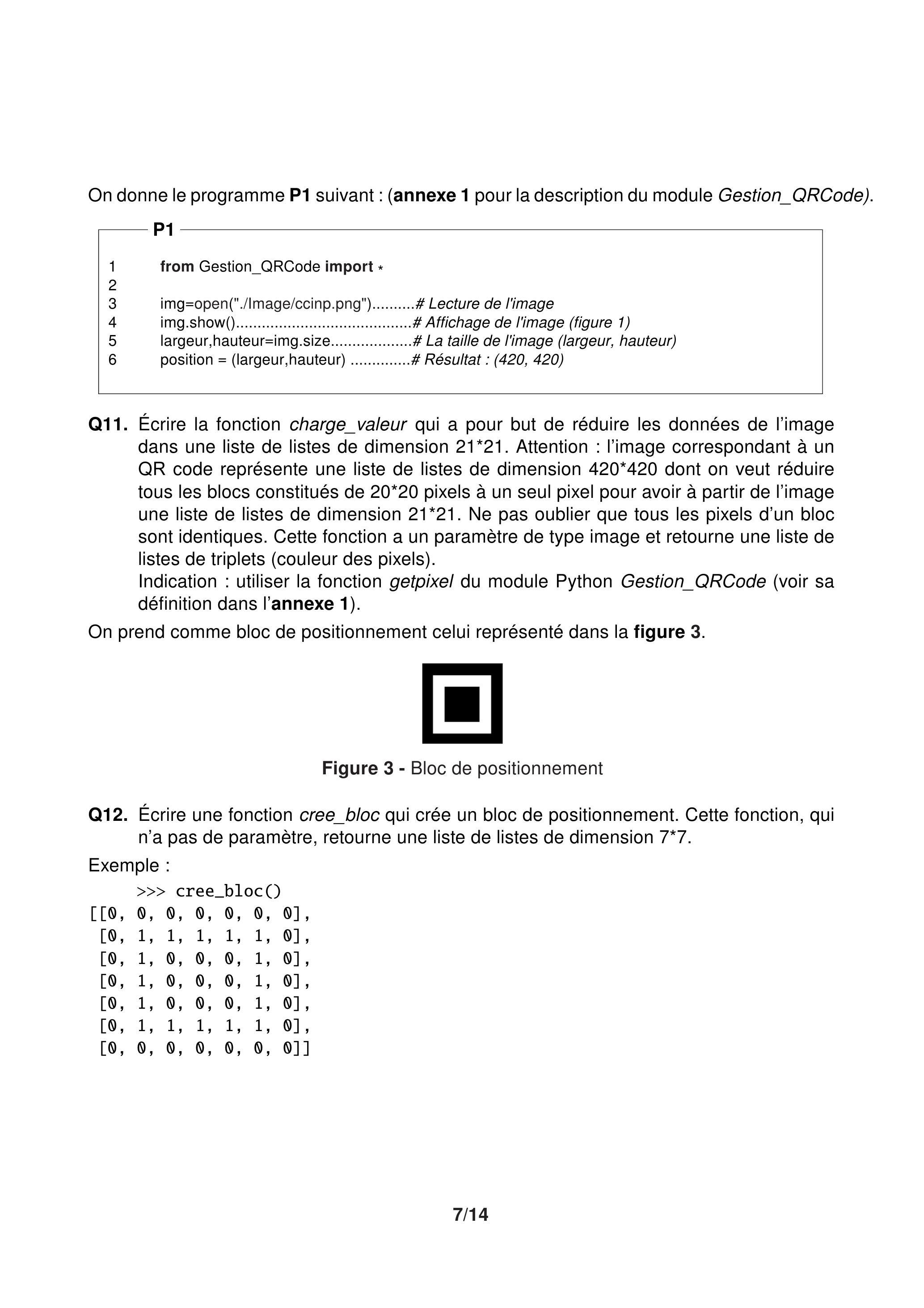 On donne le programme P1 suivant : (annexe 1 pour la description du module Gestion_QRCode).