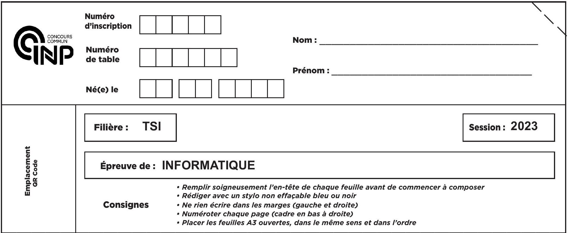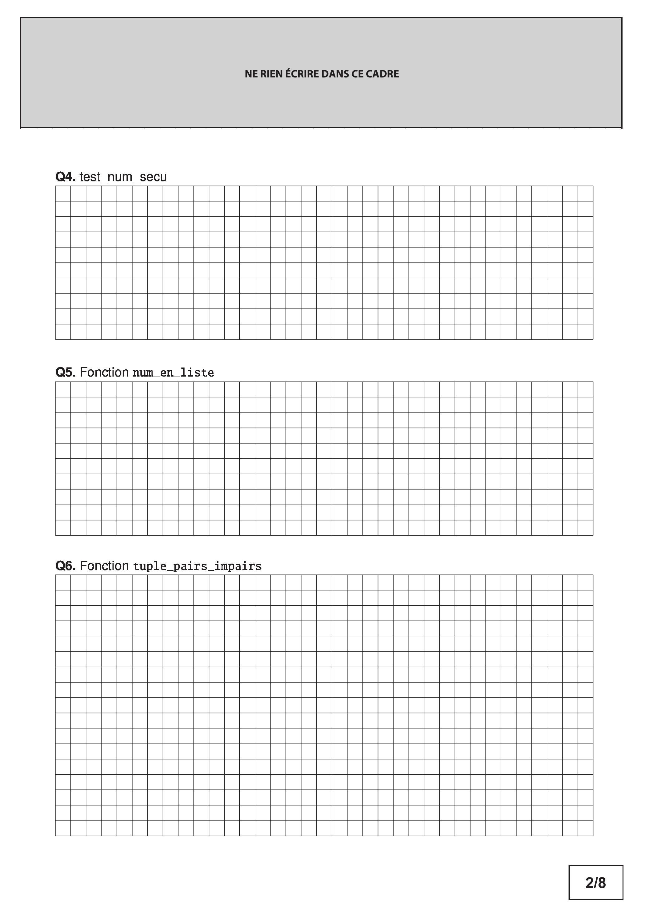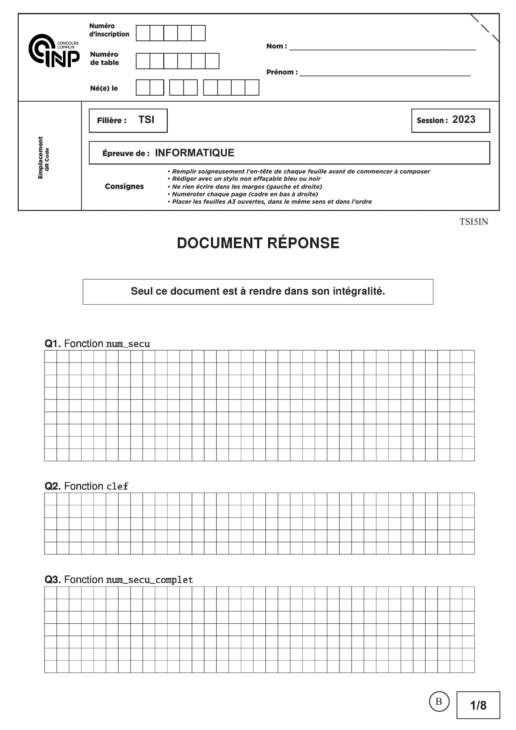 Vous devez répondre directement sur le Document Réponse, soit à l'emplacement prévu pour la réponse lorsque celle-ci implique une rédaction, soit en complétant les différents programmes en langage Python.