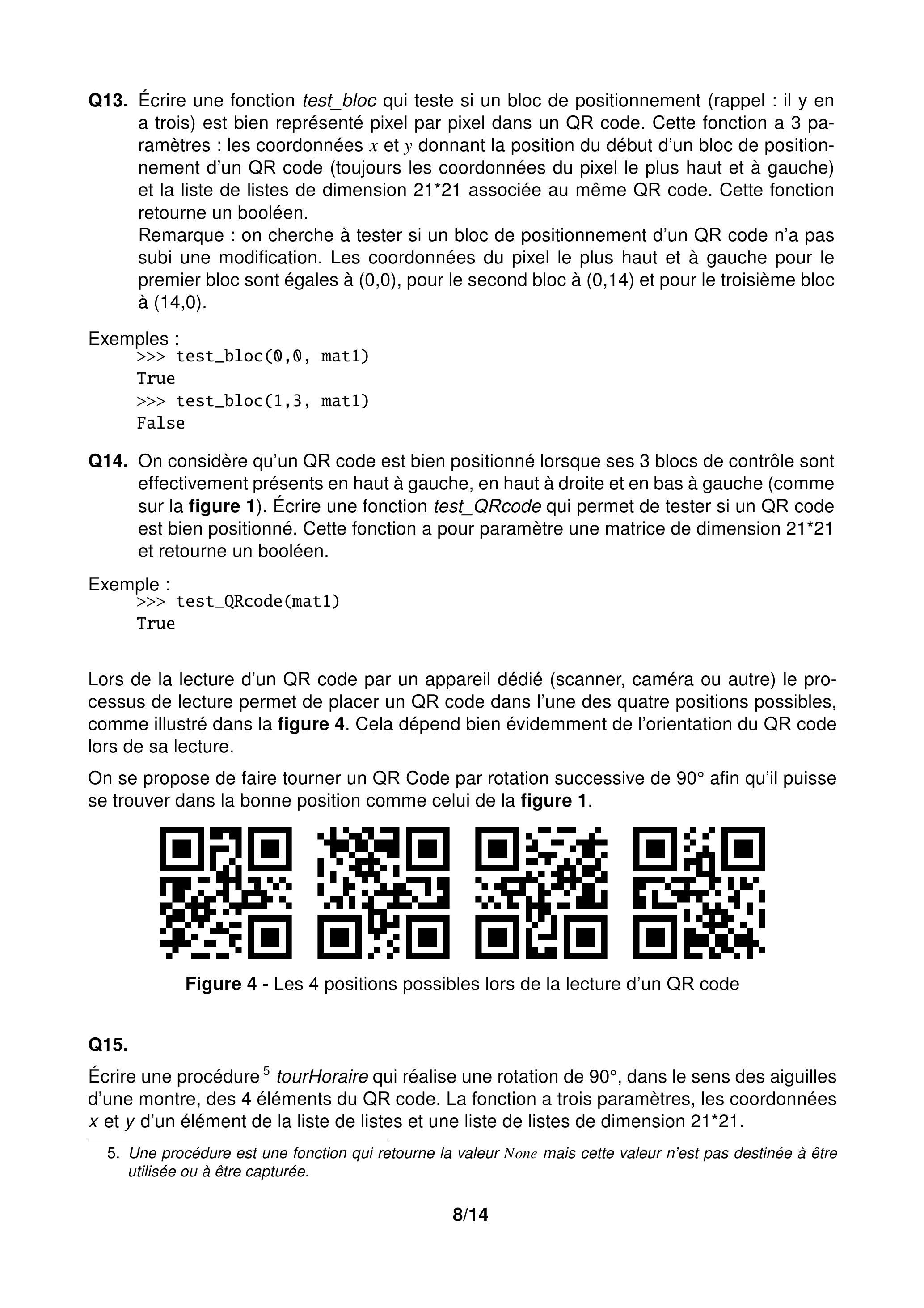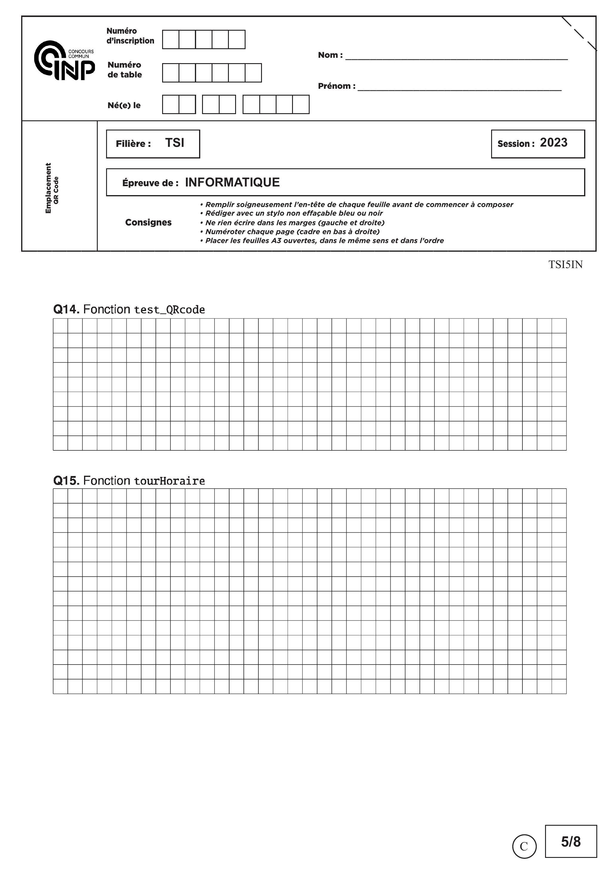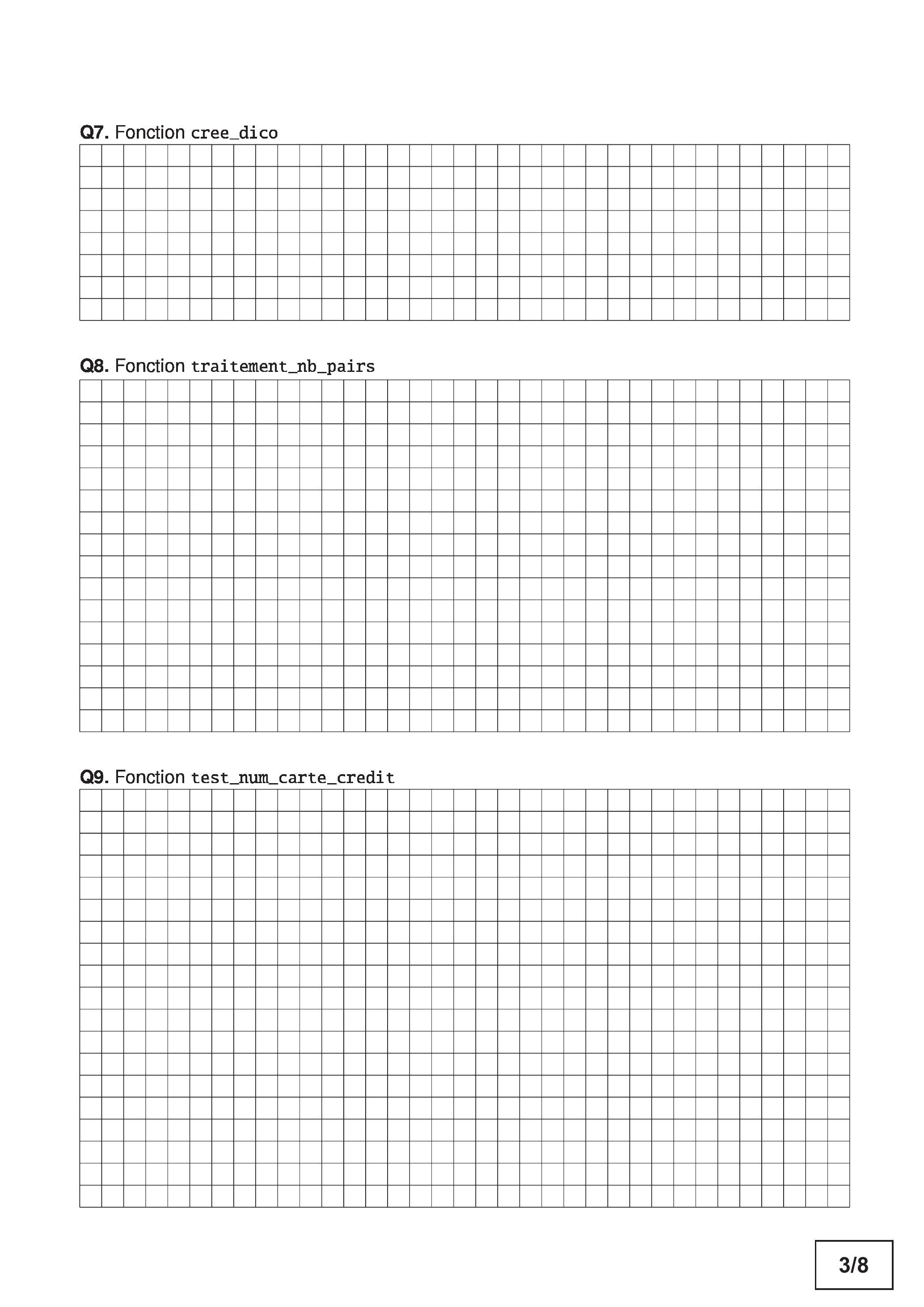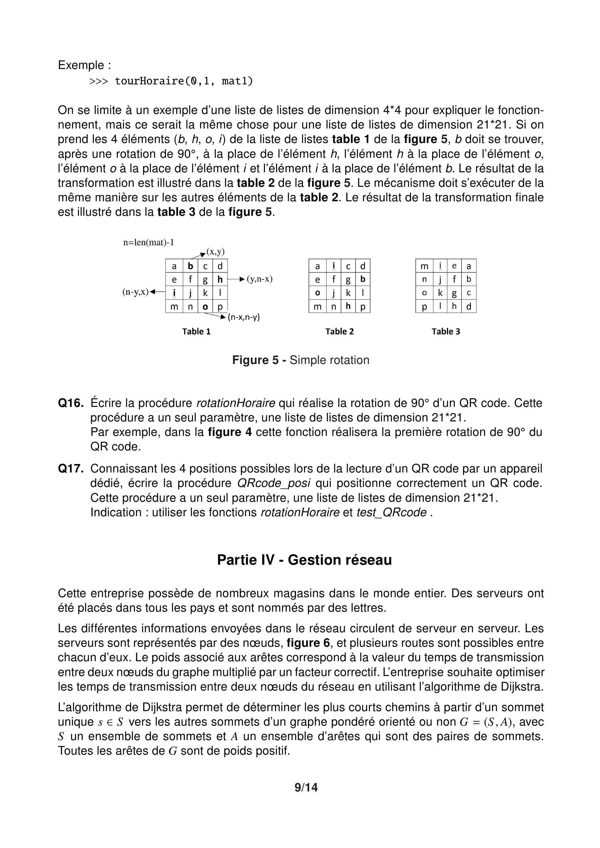 Vous devez répondre directement sur le Document Réponse, soit à l'emplacement prévu pour la réponse lorsque celle-ci implique une rédaction, soit en complétant les différents programmes en langage Python.