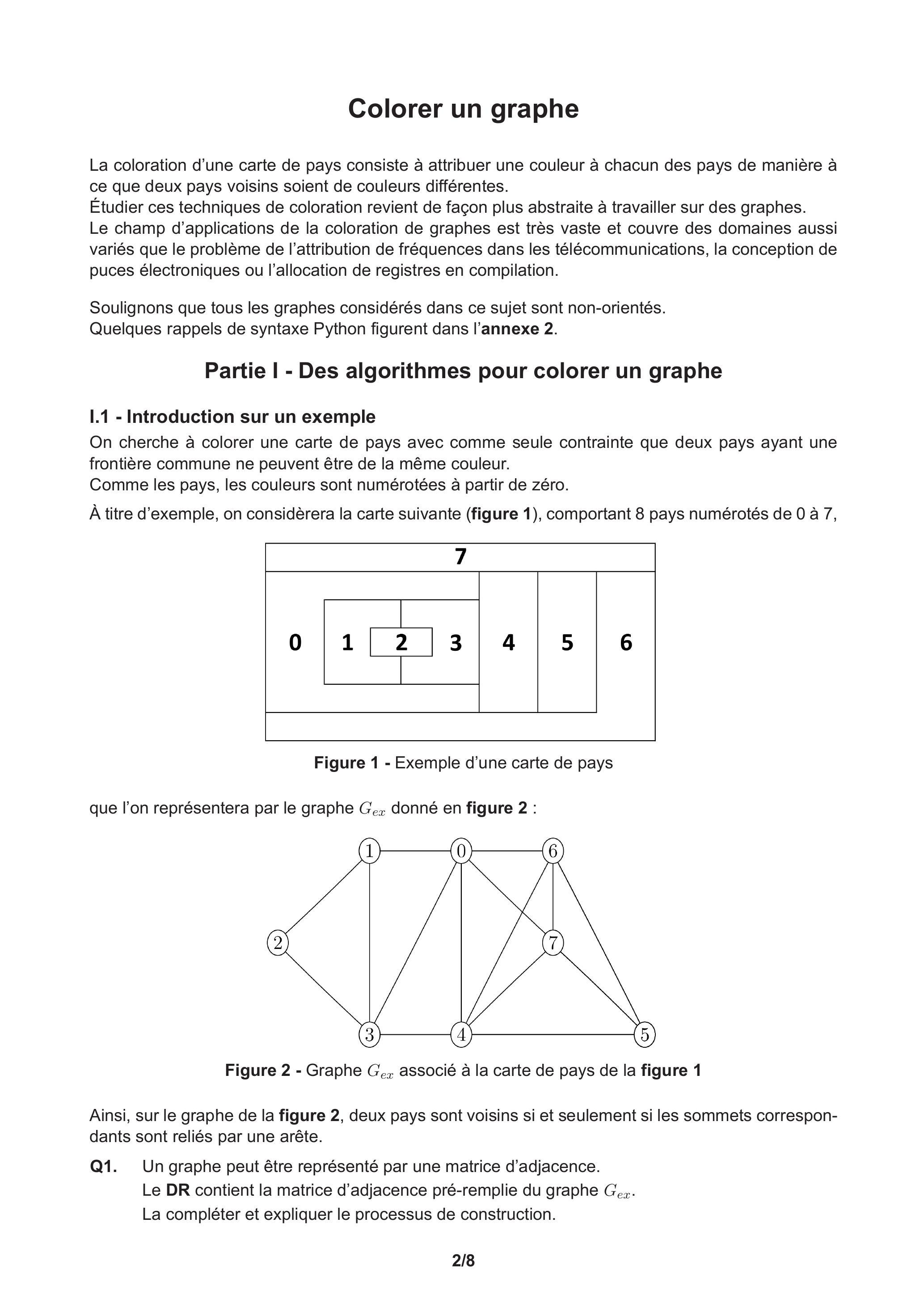À titre d'exemple, on considèrera la carte suivante (figure 1), comportant 8 pays numérotés de 0 à 7 ,