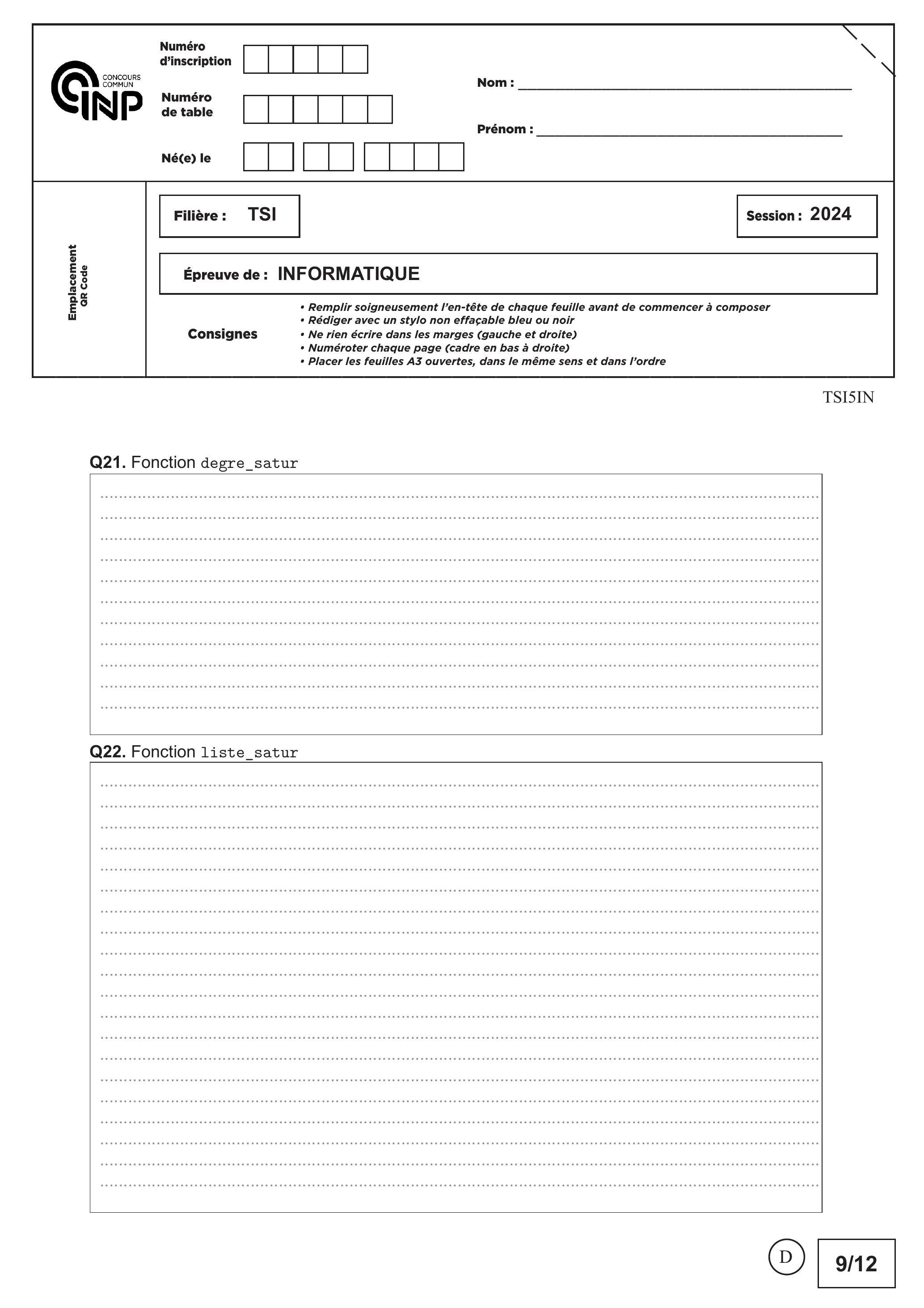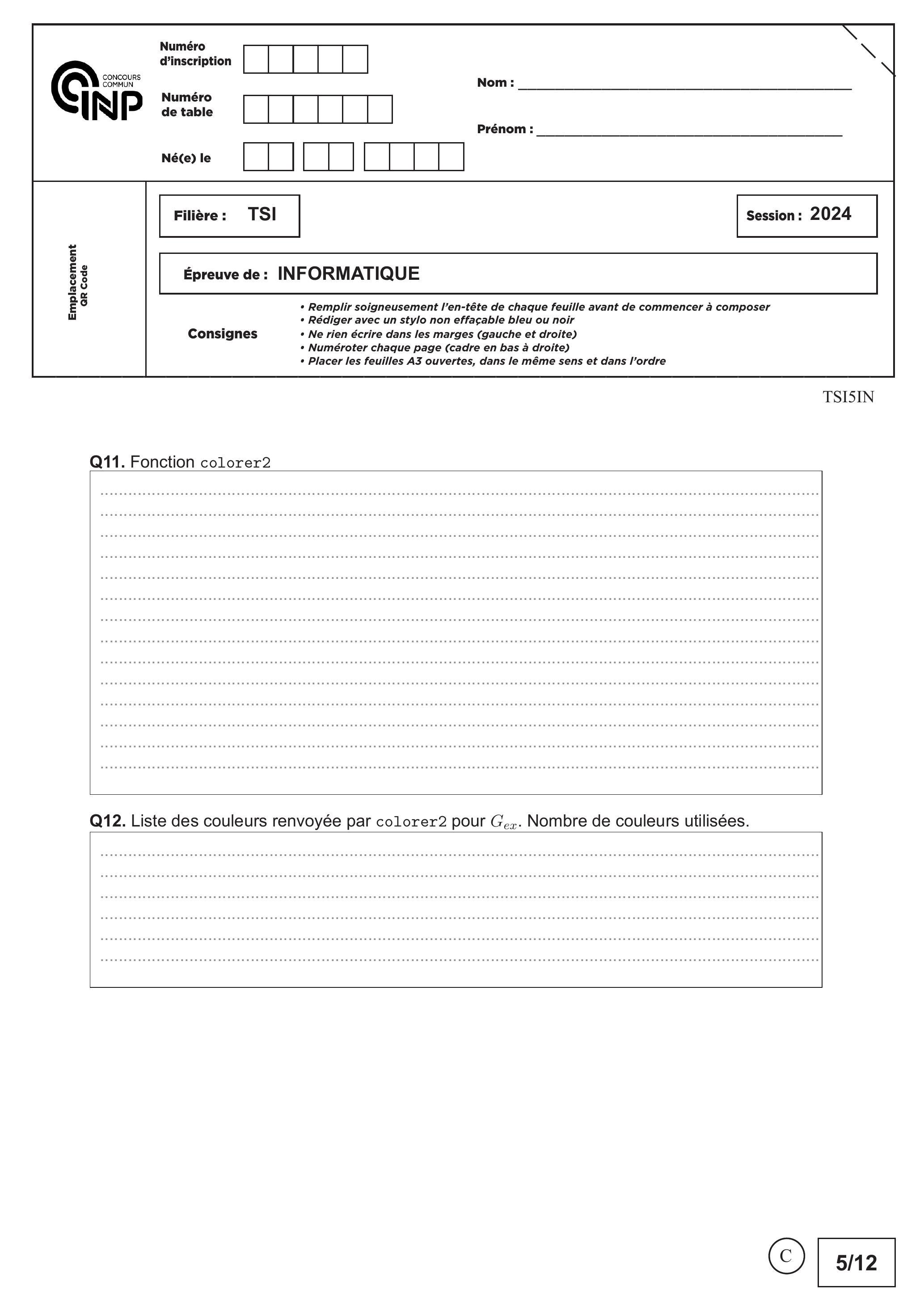 CCINP Informatique Commune TSI 2024 - Version Web LaTeX | WikiPrépa | WikiPrépa