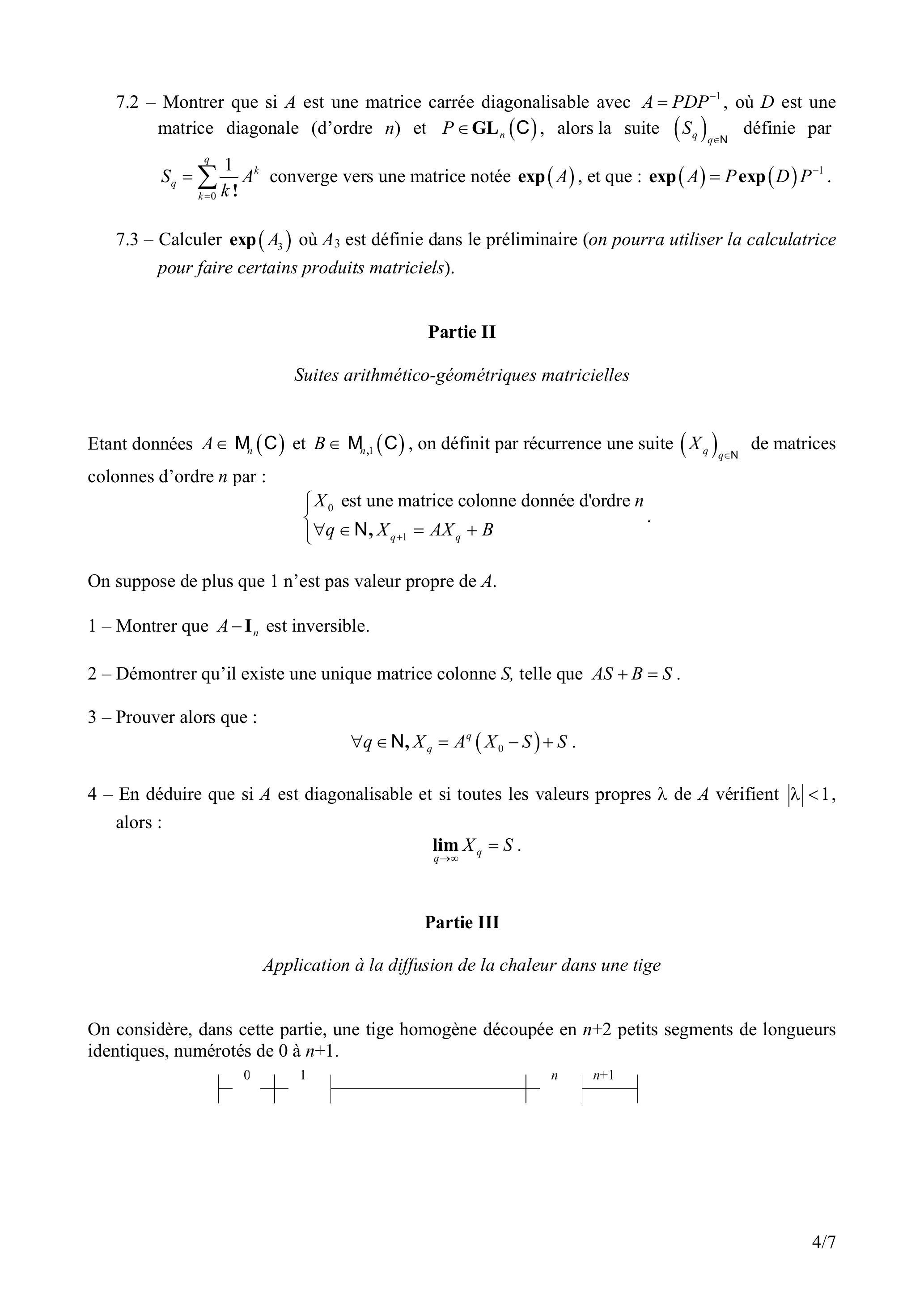 7 - Les résultats de cette question 7 ne sont pas utilisés dans la suite du problème.