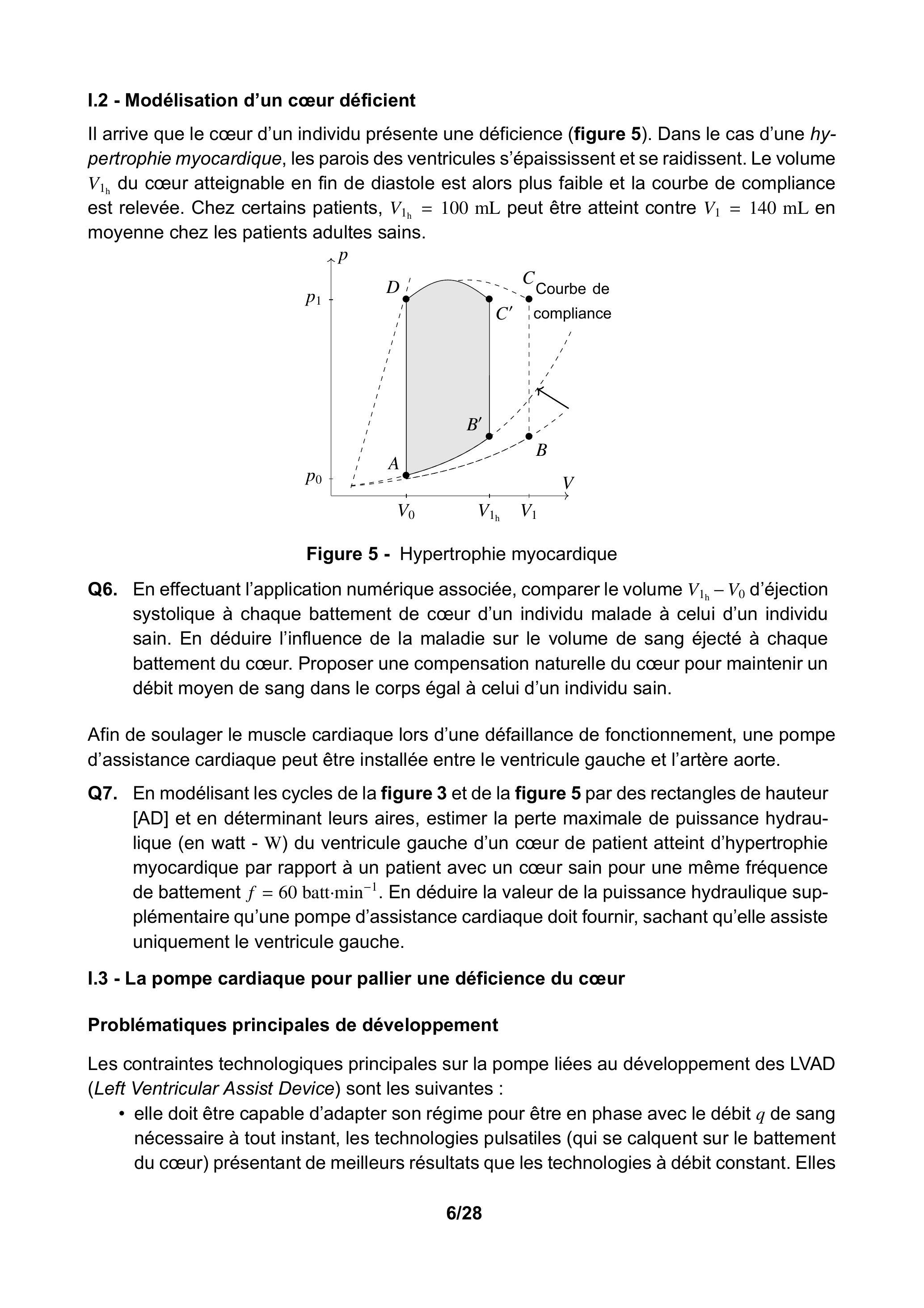 La partie I propose d'établir un modèle thermodynamique simple de fonctionnement du cœur pour en étudier les performances et les conséquences d'une déficience cardiaque.
