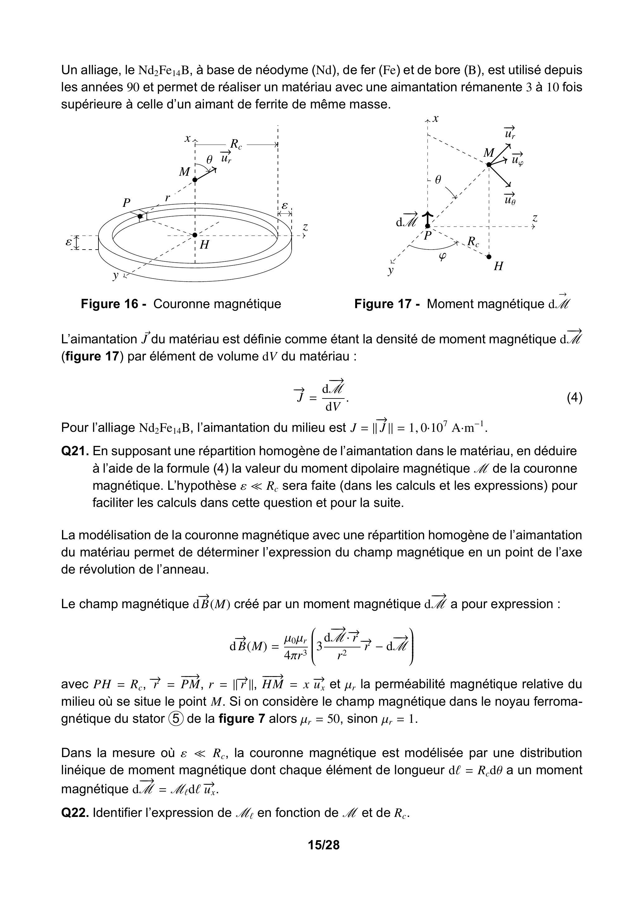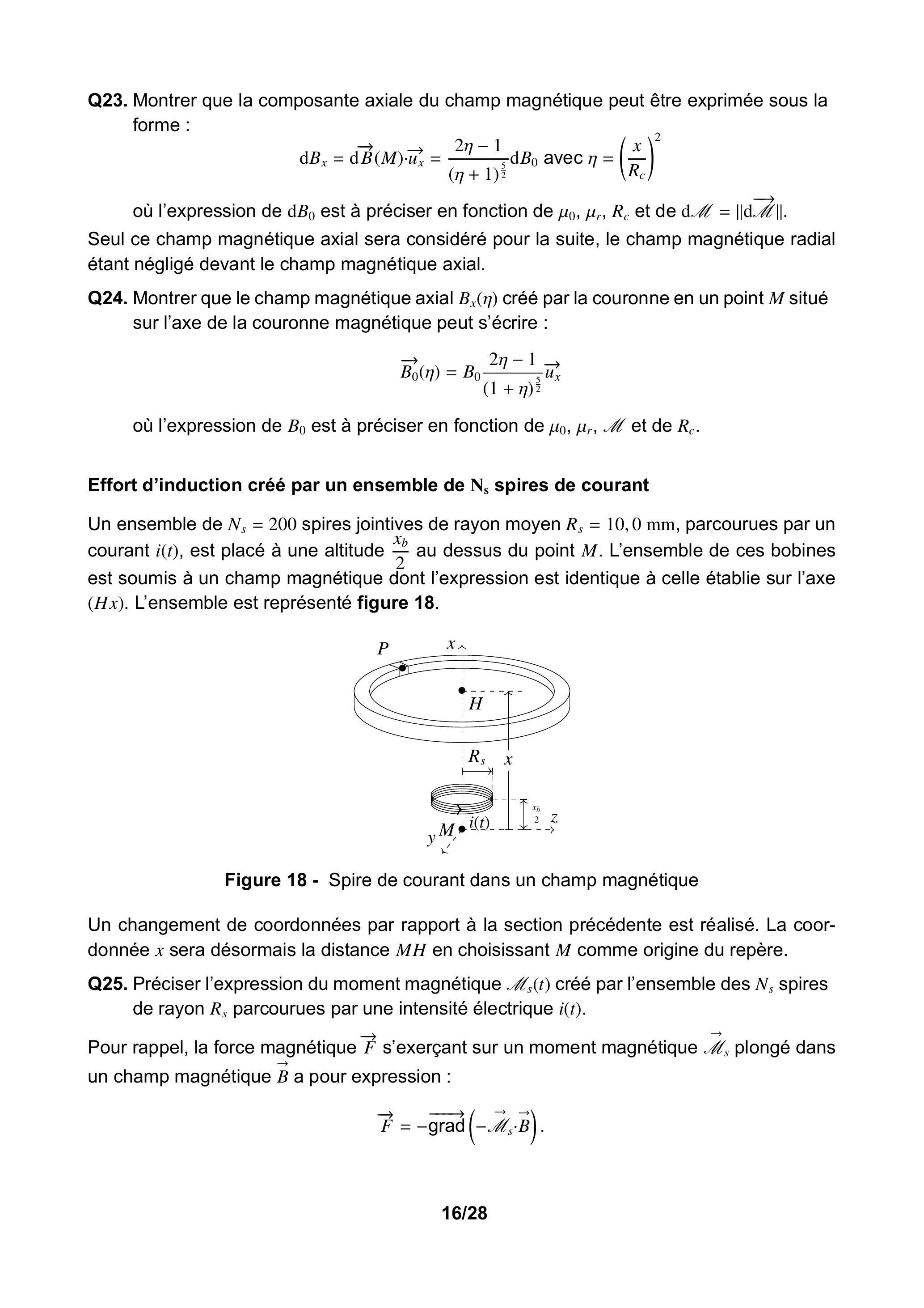L'équation résultant du principe fondamental de la dynamique appliqué à la couronne magnétique (figure 13) est rappelée ci-dessous :
