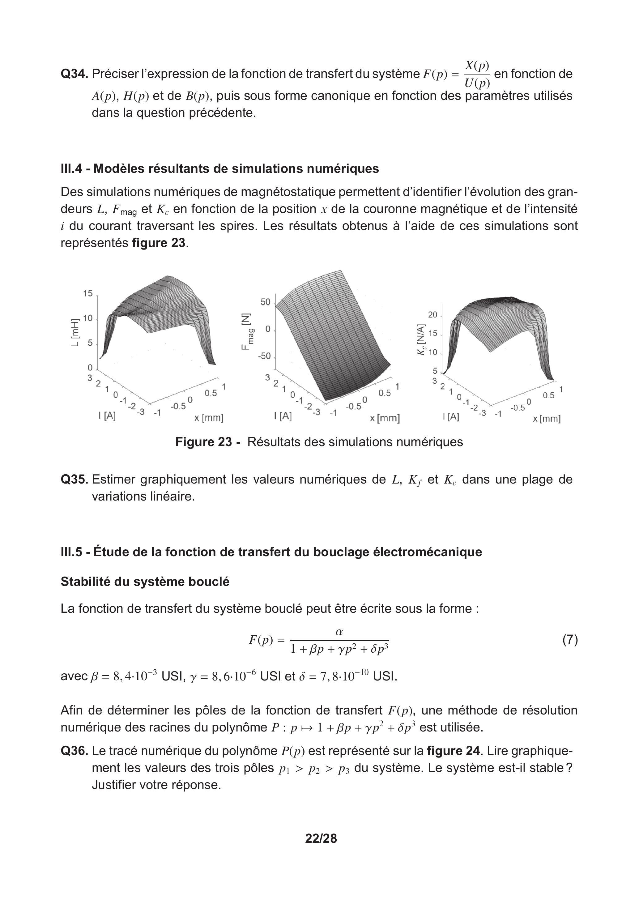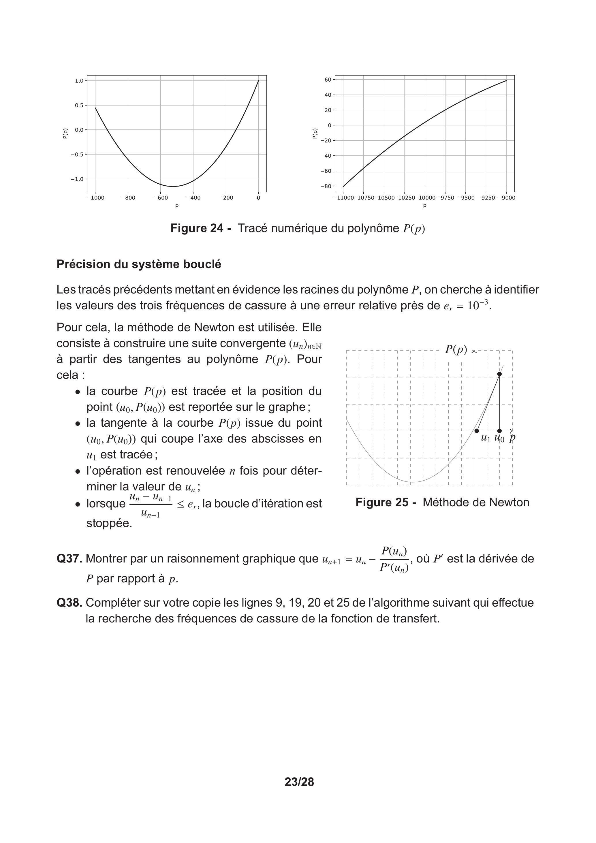 Q36. Le tracé numérique du polynôme est représenté sur la figure 24. Lire graphiquement les valeurs des trois pôles du système. Le système est-il stable? Justifier votre réponse.