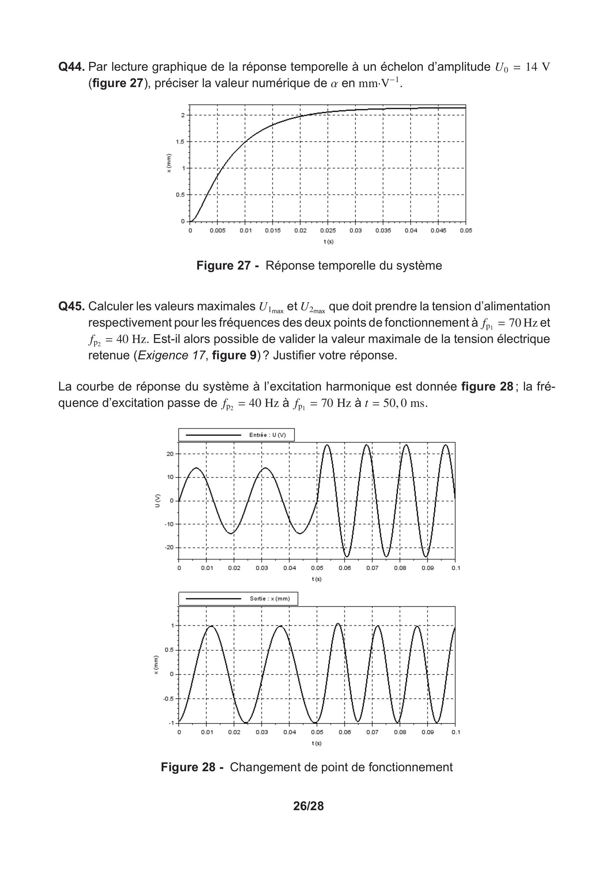 Q44. Par lecture graphique de la réponse temporelle à un échelon d'amplitude (figure 27), préciser la valeur numérique de en .