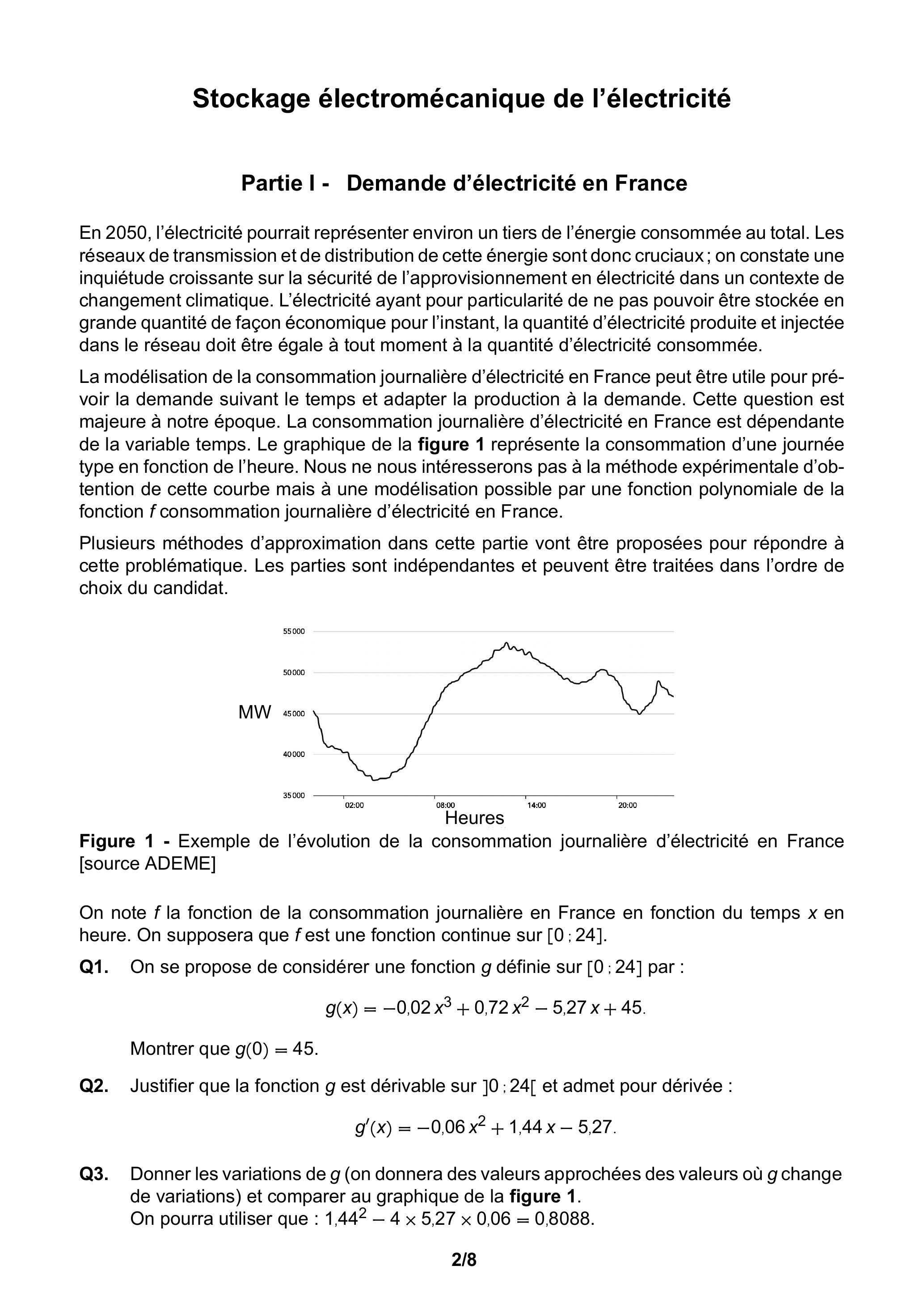 On note la fonction de la consommation journalière en France en fonction du temps en heure. On supposera que est une fonction continue sur .