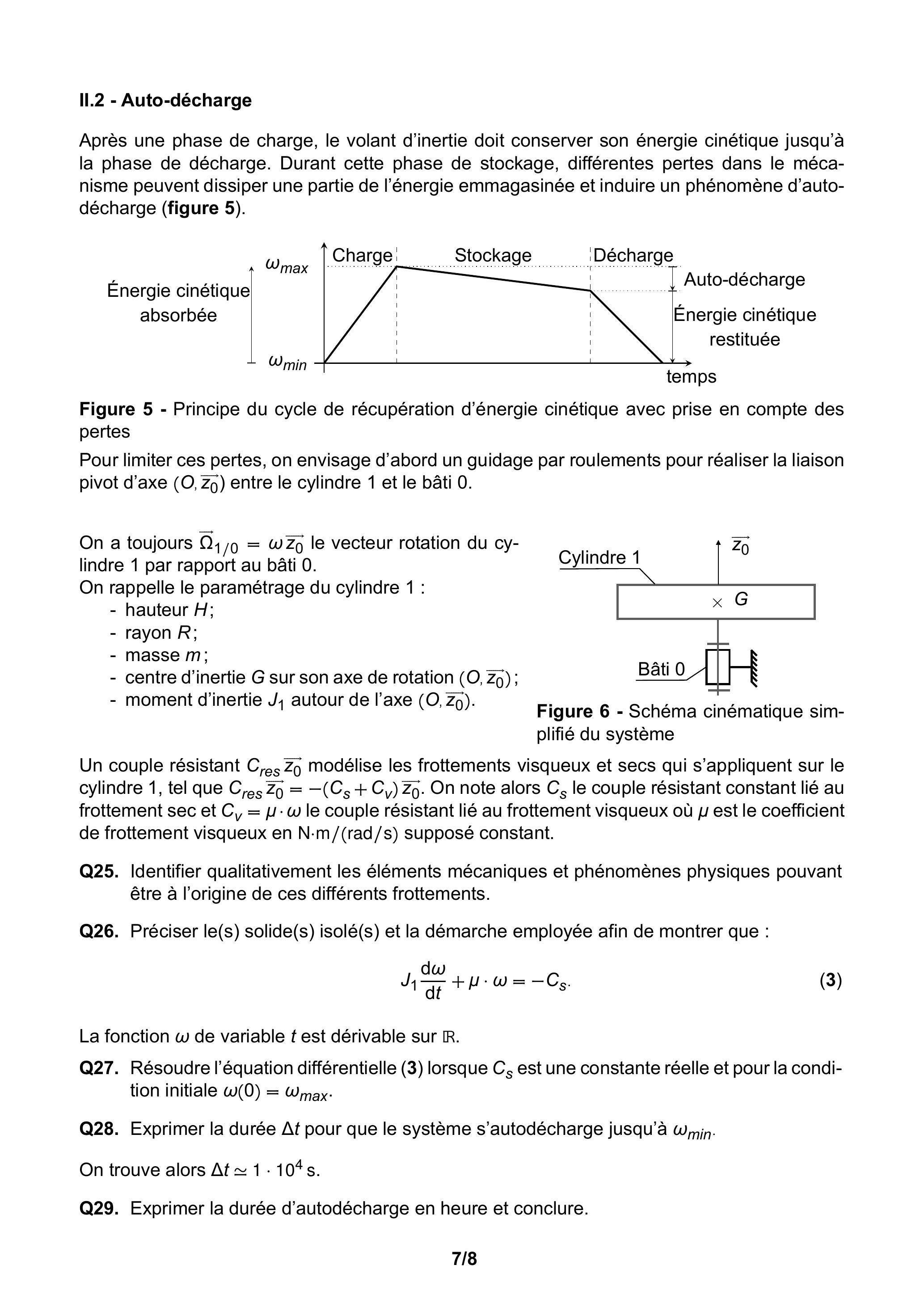 Le dispositif pouvant présenter des pertes (cas étudié en sous-partie II.2), on prendra une marge de sécurité avec une valeur de de . La forme du volant d'inertie est imposée : il s'agit d'un cylindre plein et homogène de masse , de hauteur et de rayon .