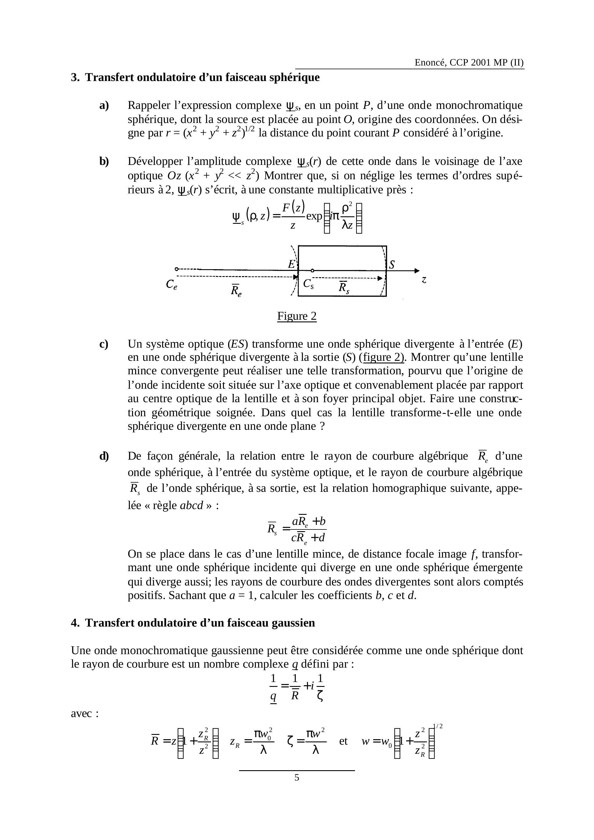 b) Développer l'amplitude complexe de cette onde dans le voisinage de l'axe optique Montrer que, si on néglige les termes d'ordres supérieurs à s'écrit, à une constante multiplicative près :