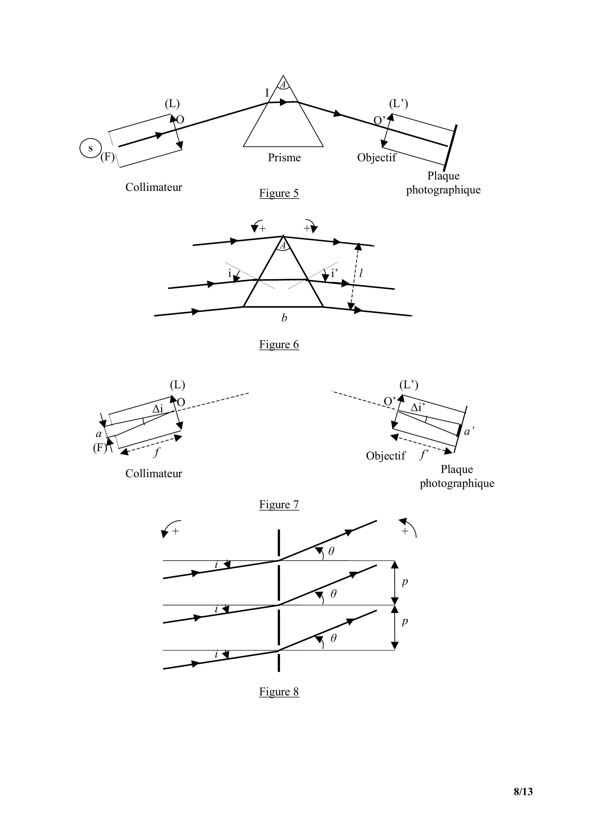 La fente , de largeur , est assez large pour négliger tout phénomène de diffraction quand elle est uniformément éclairée en lumière monochromatique. Son image géométrique, sur la plaque photographique, a une largeur '. Les et ' mentionnés (cf. figure 7) sont les variations des angles d'incidence et d'émergence correspondant aux bords de et de .
