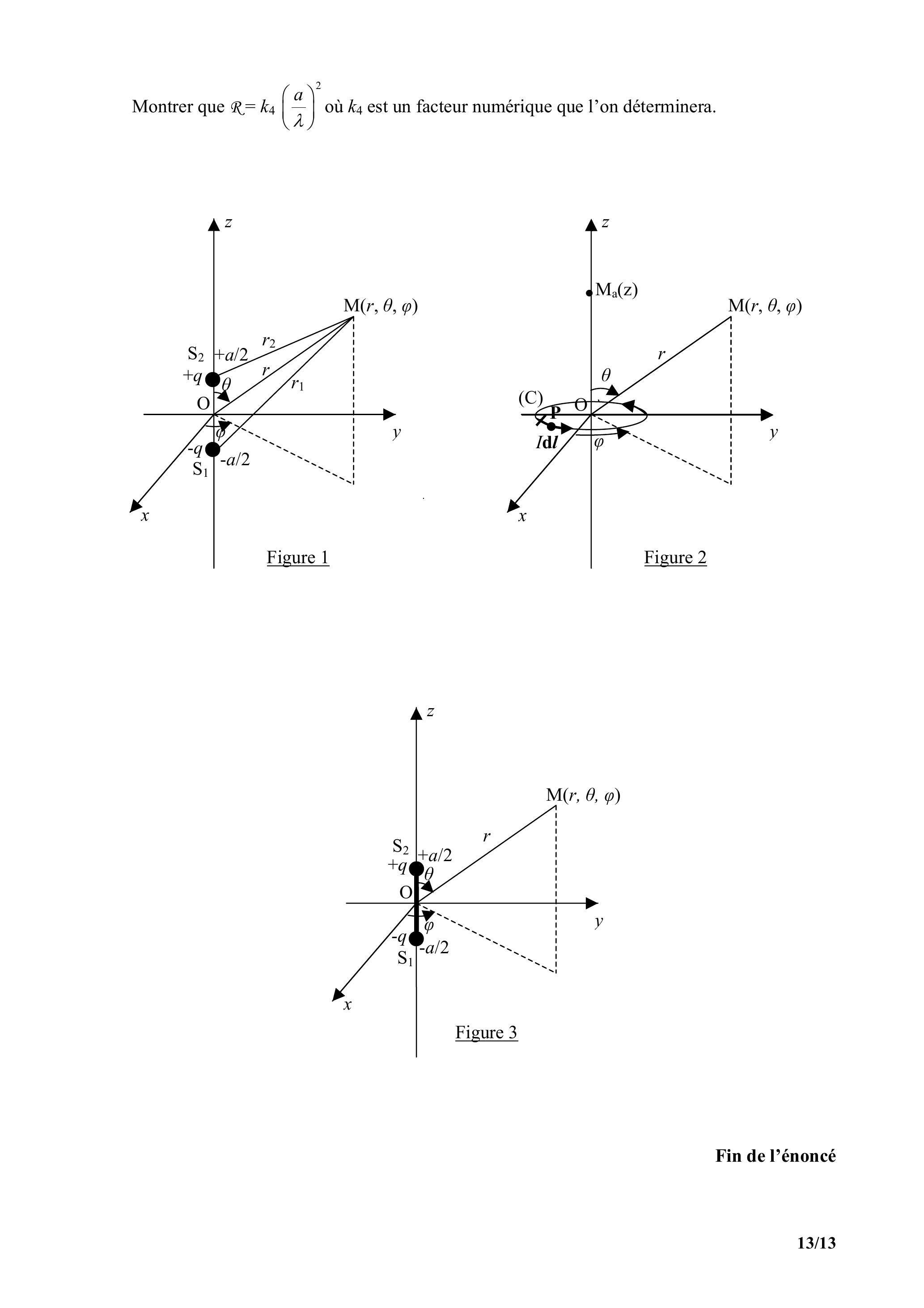Le problème d'électromagnétisme comprend trois parties indépendantes : le dipôle électrostatique, le dipôle magnétique et le dipôle oscillant.
