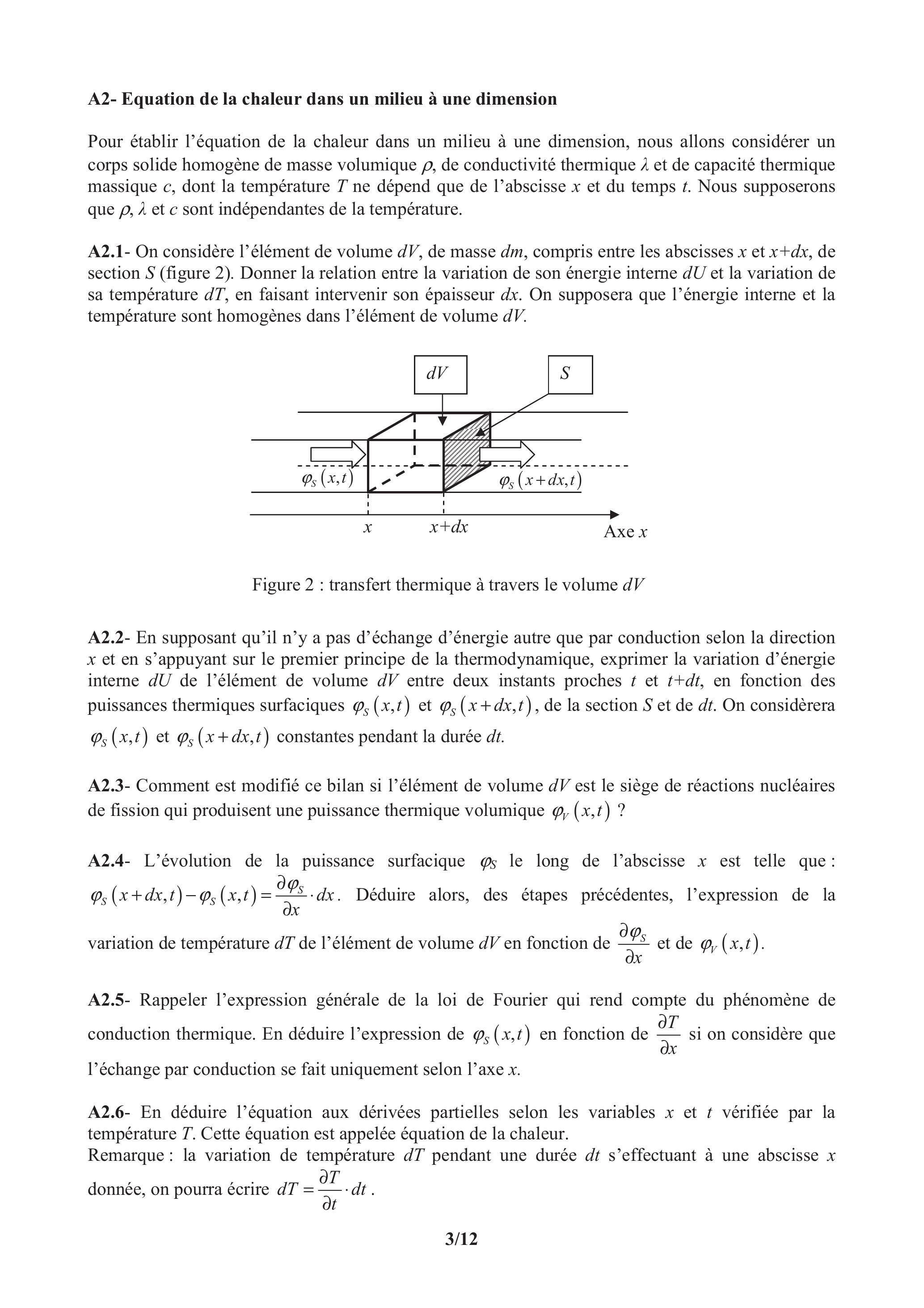 A2.4- L'évolution de la puissance surfacique le long de l'abscisse est telle que: . Déduire alors, des étapes précédentes, l'expression de la variation de température de l'élément de volume en fonction de et de .