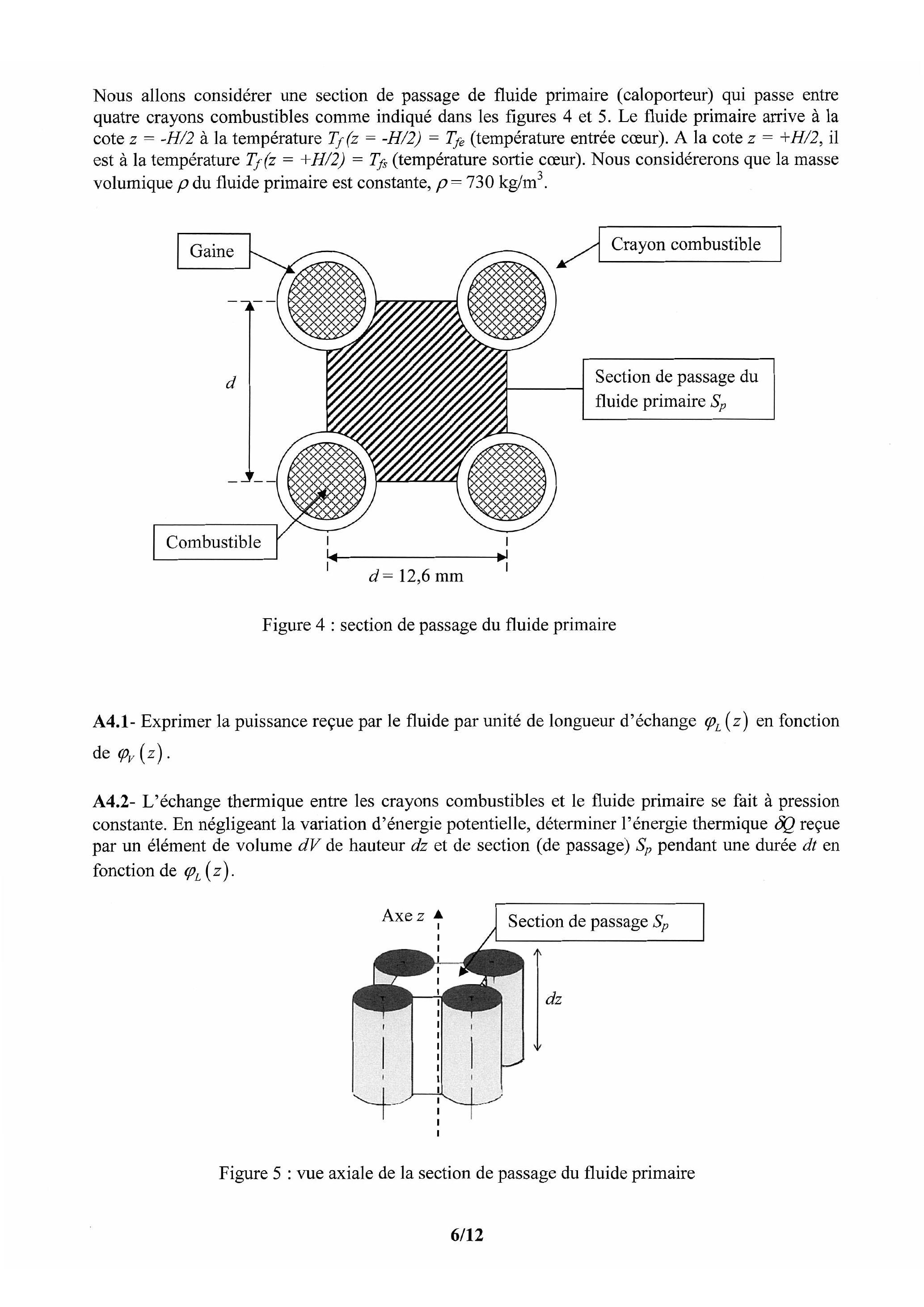 A4.4- Le débit massique de fluide primaire circulant dans la section de passage est donné par la relation : , avec qui est la vitesse du fluide primaire, . Par ailleurs, en régime permanent, la variation de l'enthalpie massique du fluide primaire peut s'écrire: , avec qui représente la capacité thermique massique à pression constante du fluide primaire.