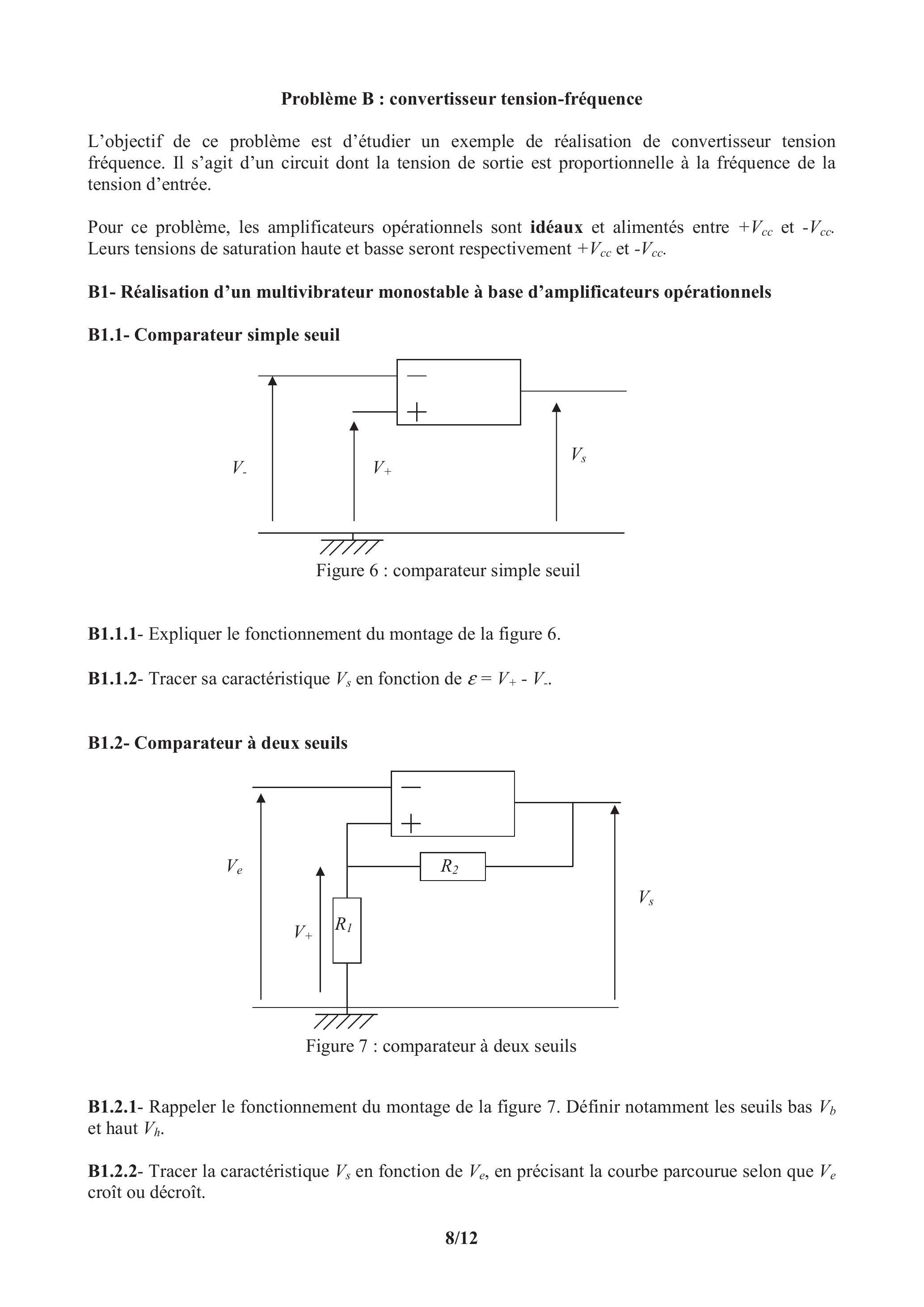 L'objectif de ce problème est d'étudier un exemple de réalisation de convertisseur tension fréquence. Il s'agit d'un circuit dont la tension de sortie est proportionnelle à la fréquence de la tension d'entrée.