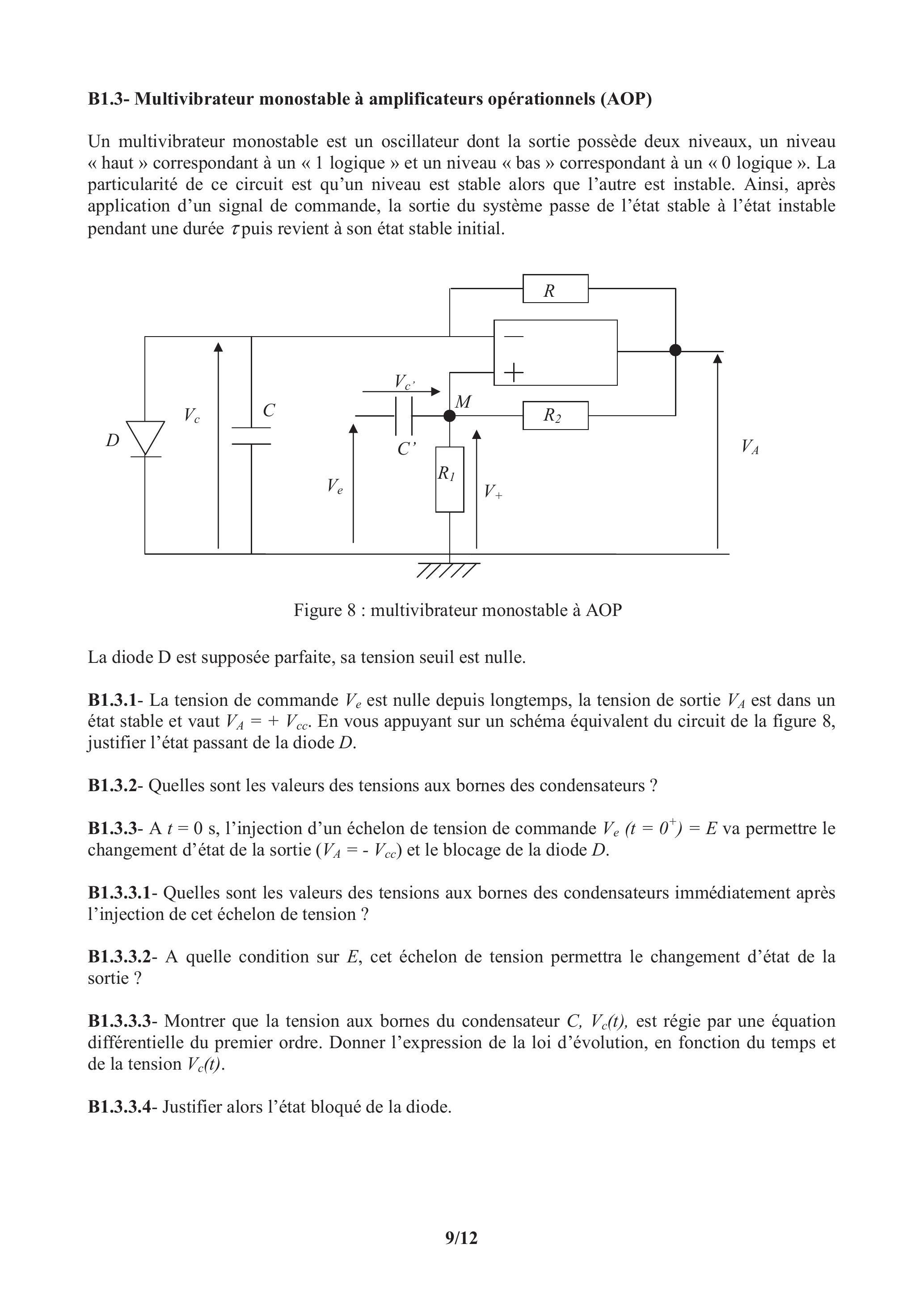 B1.3- Multivibrateur monostable à amplificateurs opérationnels (AOP)