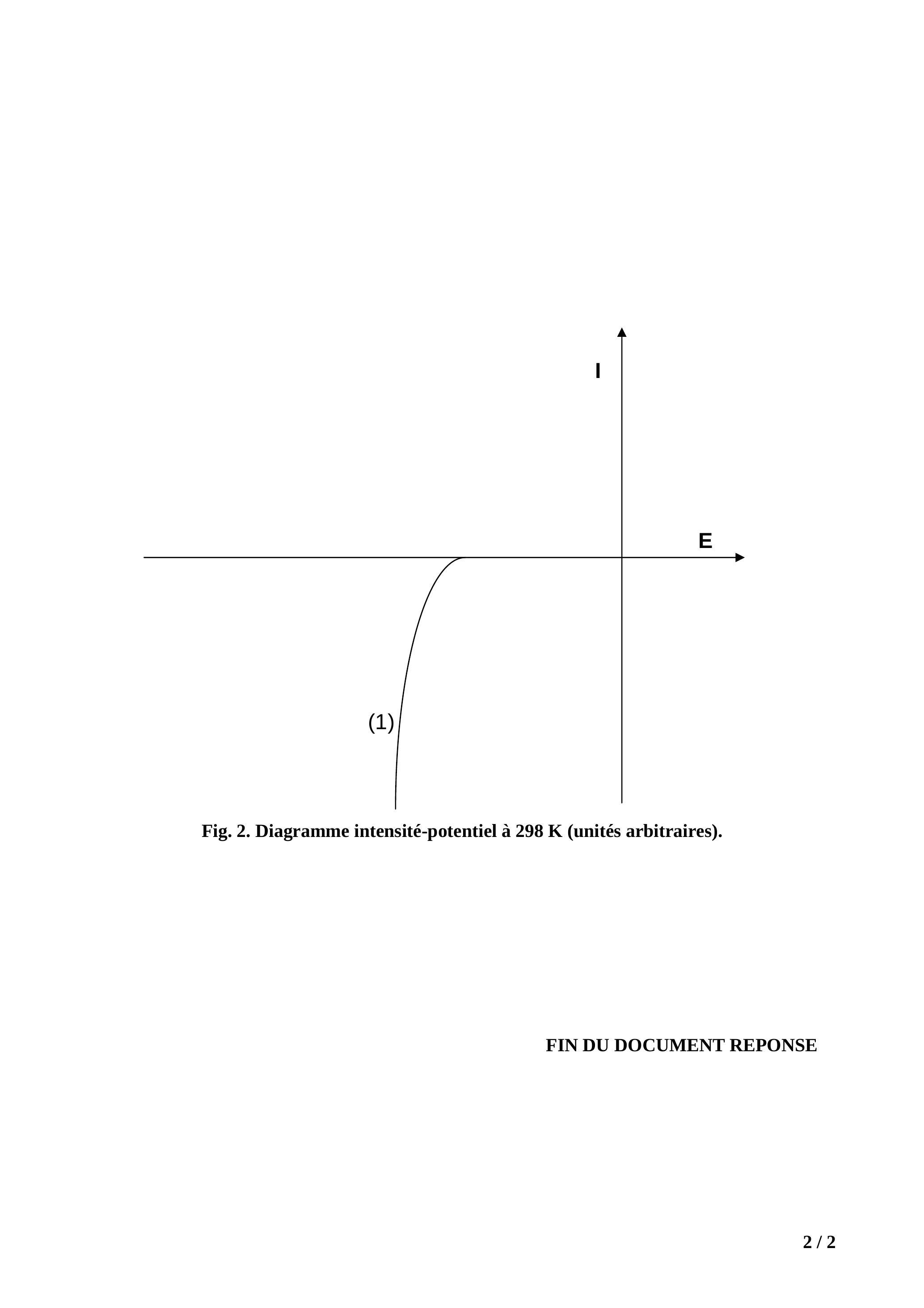 IV.8. Le diagramme intensité-potentiel schématique de la Figure 2 du document réponse, tracé à , présente la courbe (1) de réduction de . Cette courbe n'est pas modifiée quand on la trace sur diverses électrodes ( ). La courbe d'oxydation de est, elle, fortement dépendante de la nature de l'électrode. Cette oxydation est lente sur la plupart des électrodes métalliques, mais rapide sur une électrode de nickel (ce qui a fait appeler le procédé «autocatalytique»). Tracer sur ce diagramme, de façon schématique, la courbe d’oxydation de dans les deux situations suivantes :