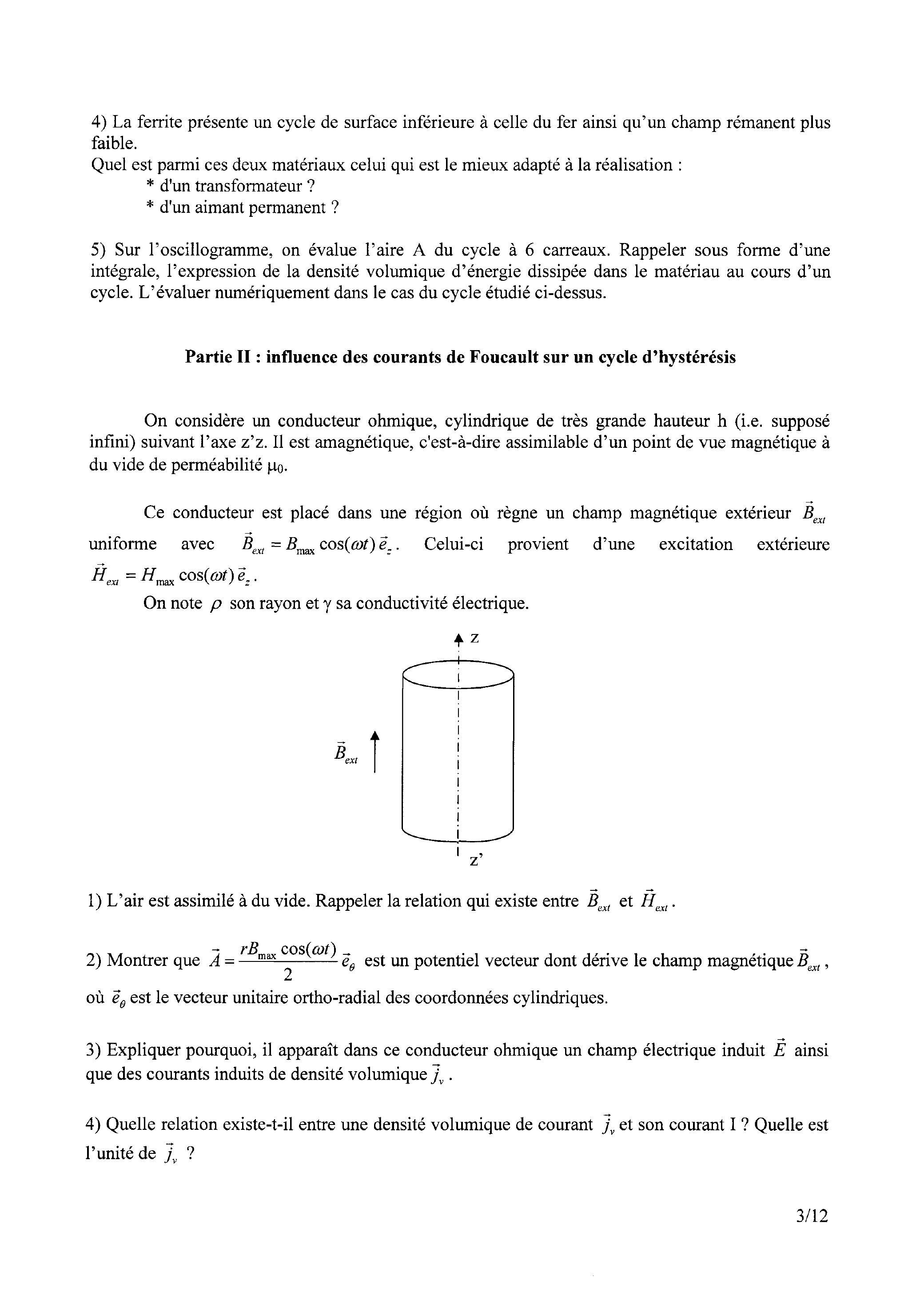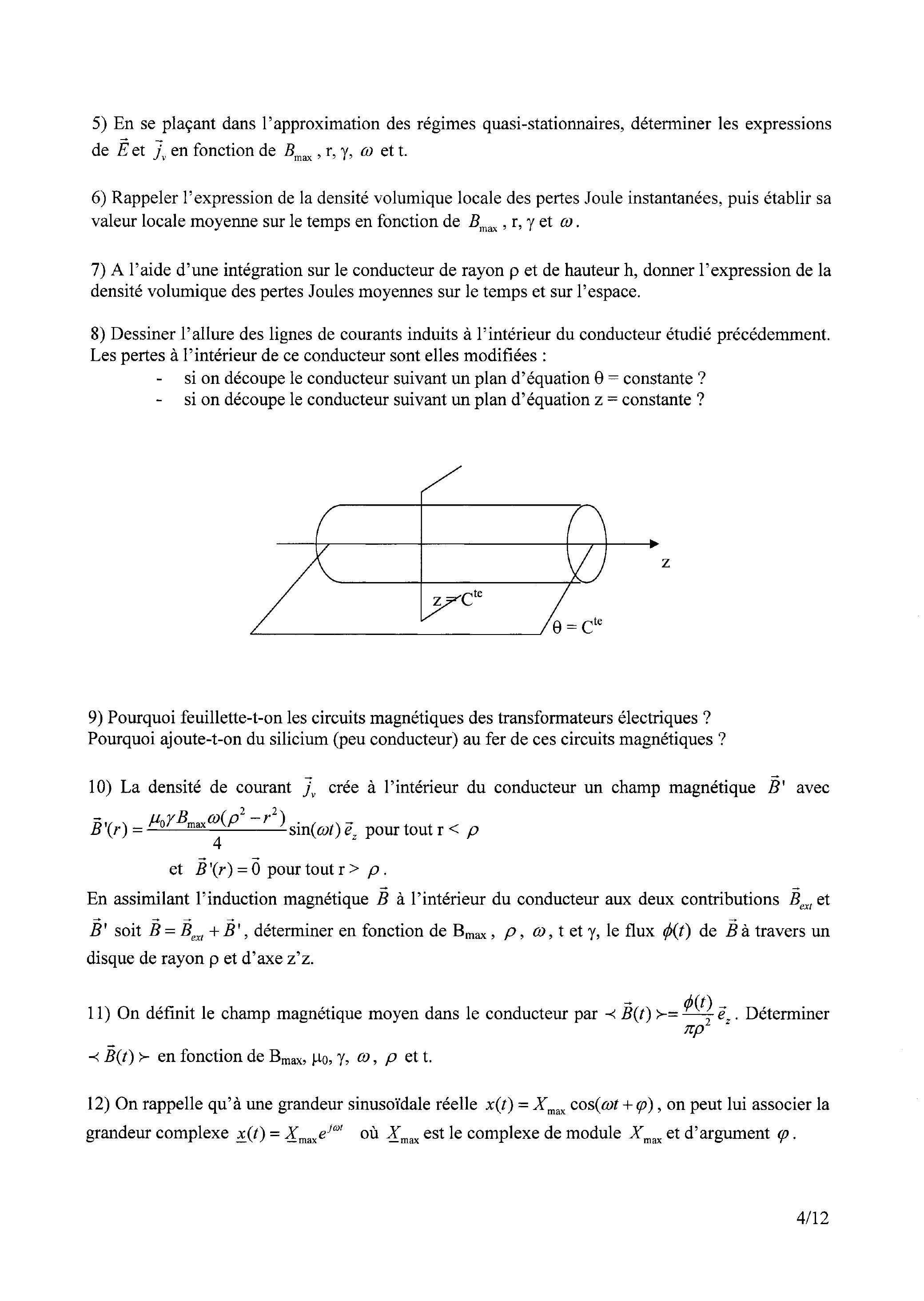 3. Expliquer pourquoi, il apparaît dans ce conducteur ohmique un champ électrique induit ainsi que des courants induits de densité volumique .