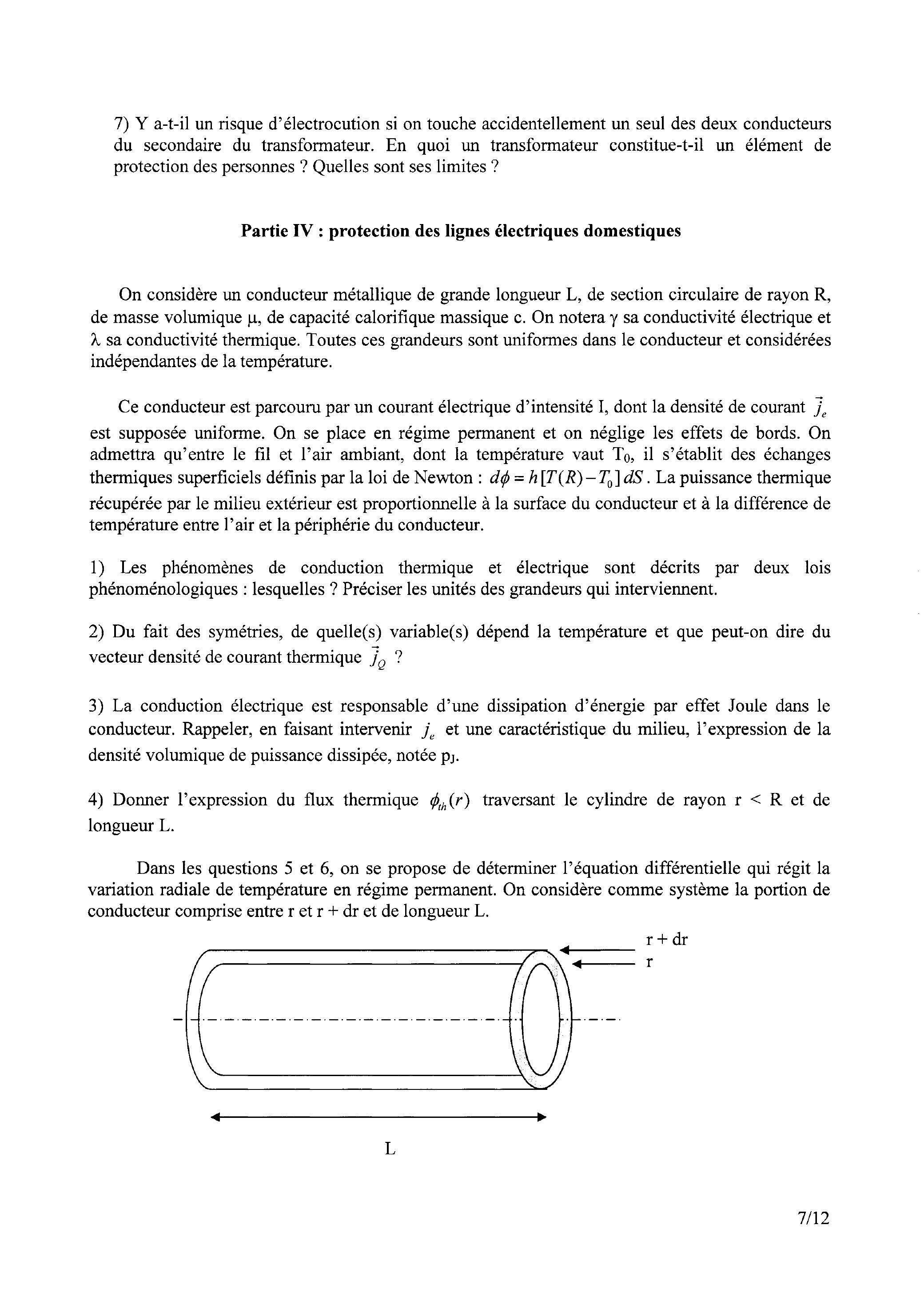 On considère un conducteur métallique de grande longueur L , de section circulaire de rayon R , de masse volumique , de capacité calorifique massique c. On notera sa conductivité électrique et sa conductivité thermique. Toutes ces grandeurs sont uniformes dans le conducteur et considérées indépendantes de la température.