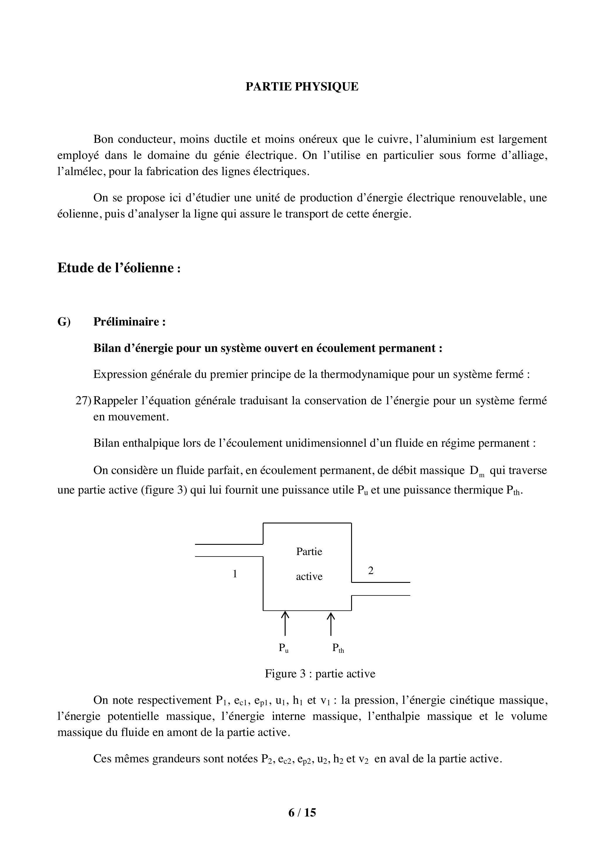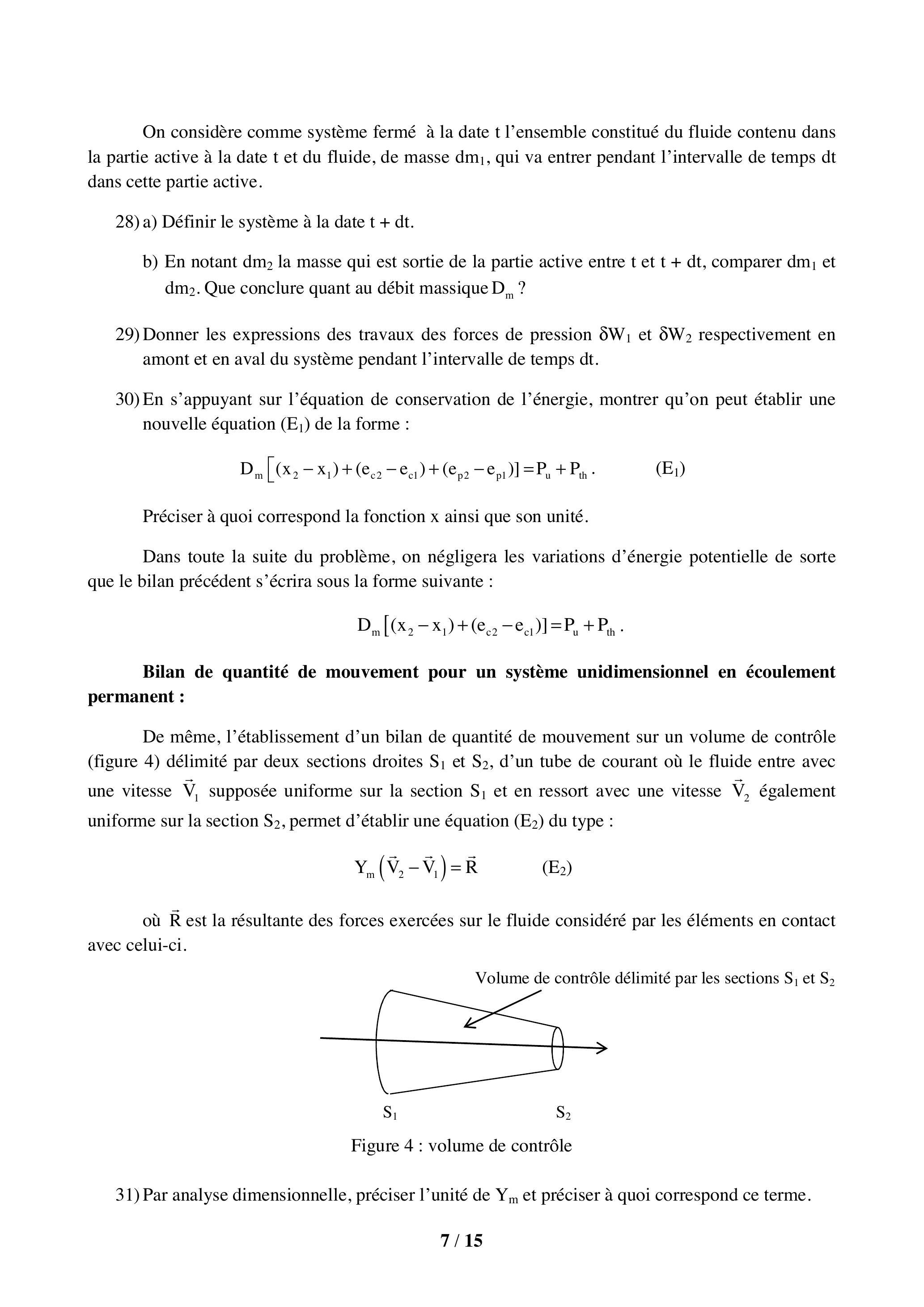 Dans toute la suite du problème, on négligera les variations d'énergie potentielle de sorte que le bilan précédent s'écrira sous la forme suivante :