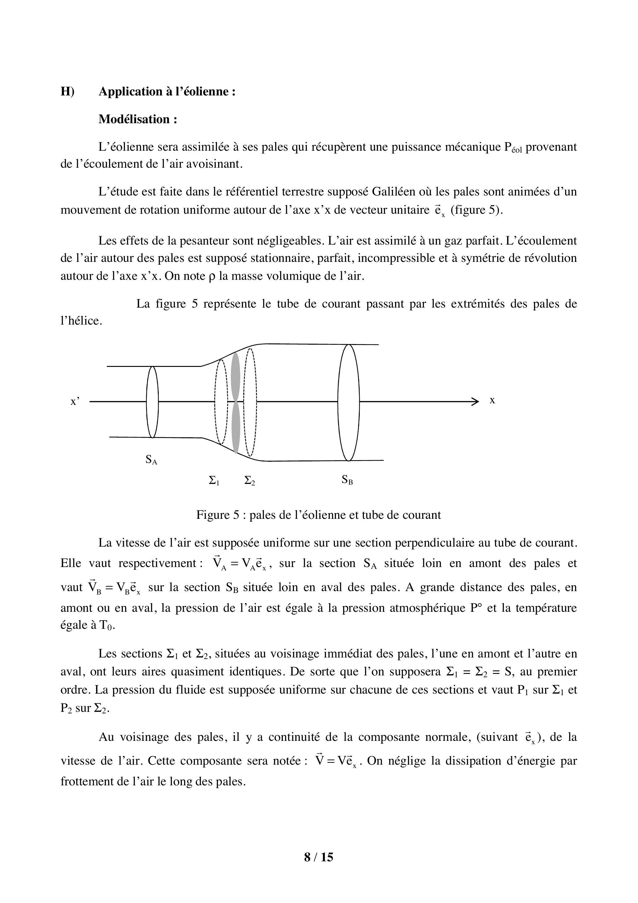 On se propose d'appliquer l'équation ( ) sur le fluide contenu dans le tube de courant compris entre les sections éloignées et situées en amont et en aval des pales de l'éolienne, en admettant que la résultante des forces de pression est nulle.