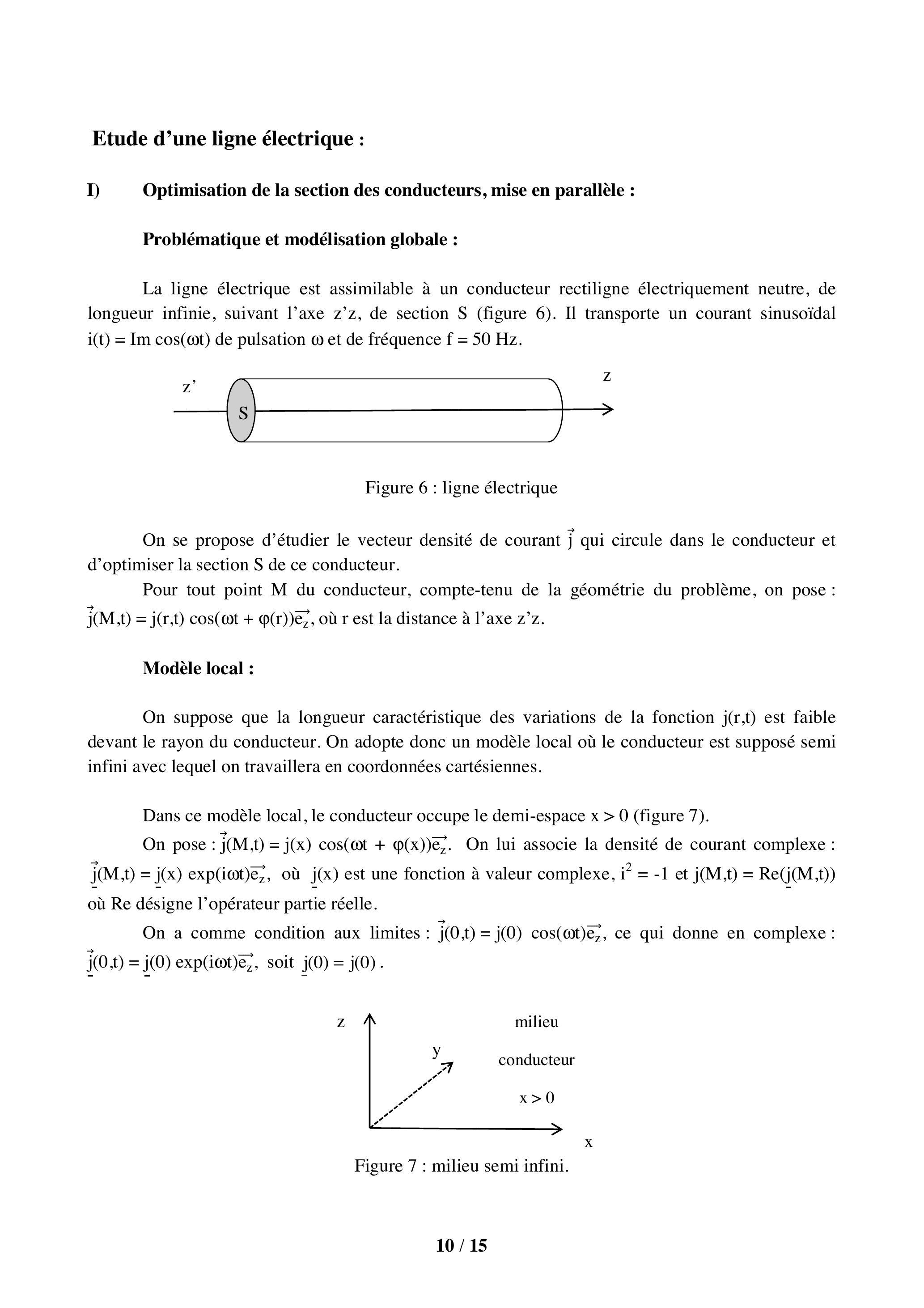 La ligne électrique est assimilable à un conducteur rectiligne électriquement neutre, de longueur infinie, suivant l'axe 'z, de section (figure 6). Il transporte un courant sinusoïdal de pulsation et de fréquence .