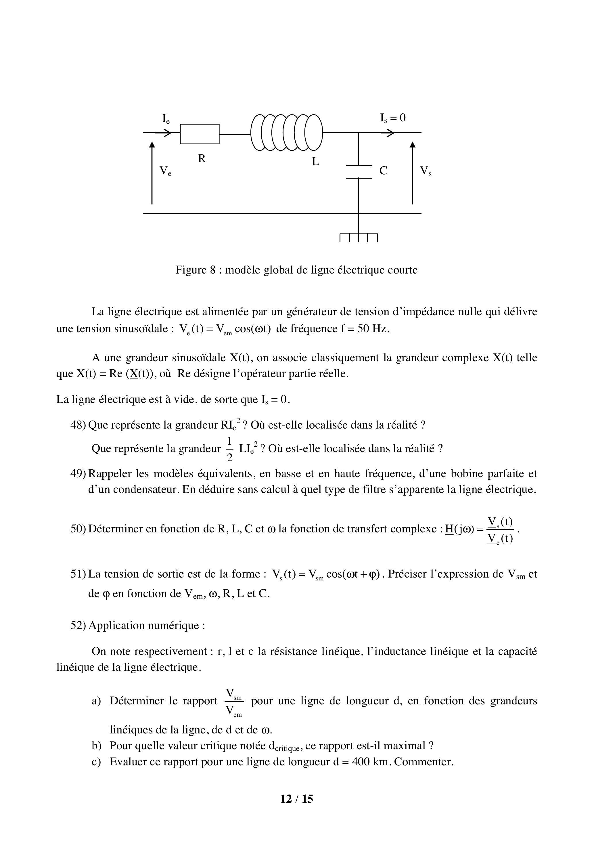 49) Rappeler les modèles équivalents, en basse et en haute fréquence, d'une bobine parfaite et d'un condensateur. En déduire sans calcul à quel type de filtre s'apparente la ligne électrique.