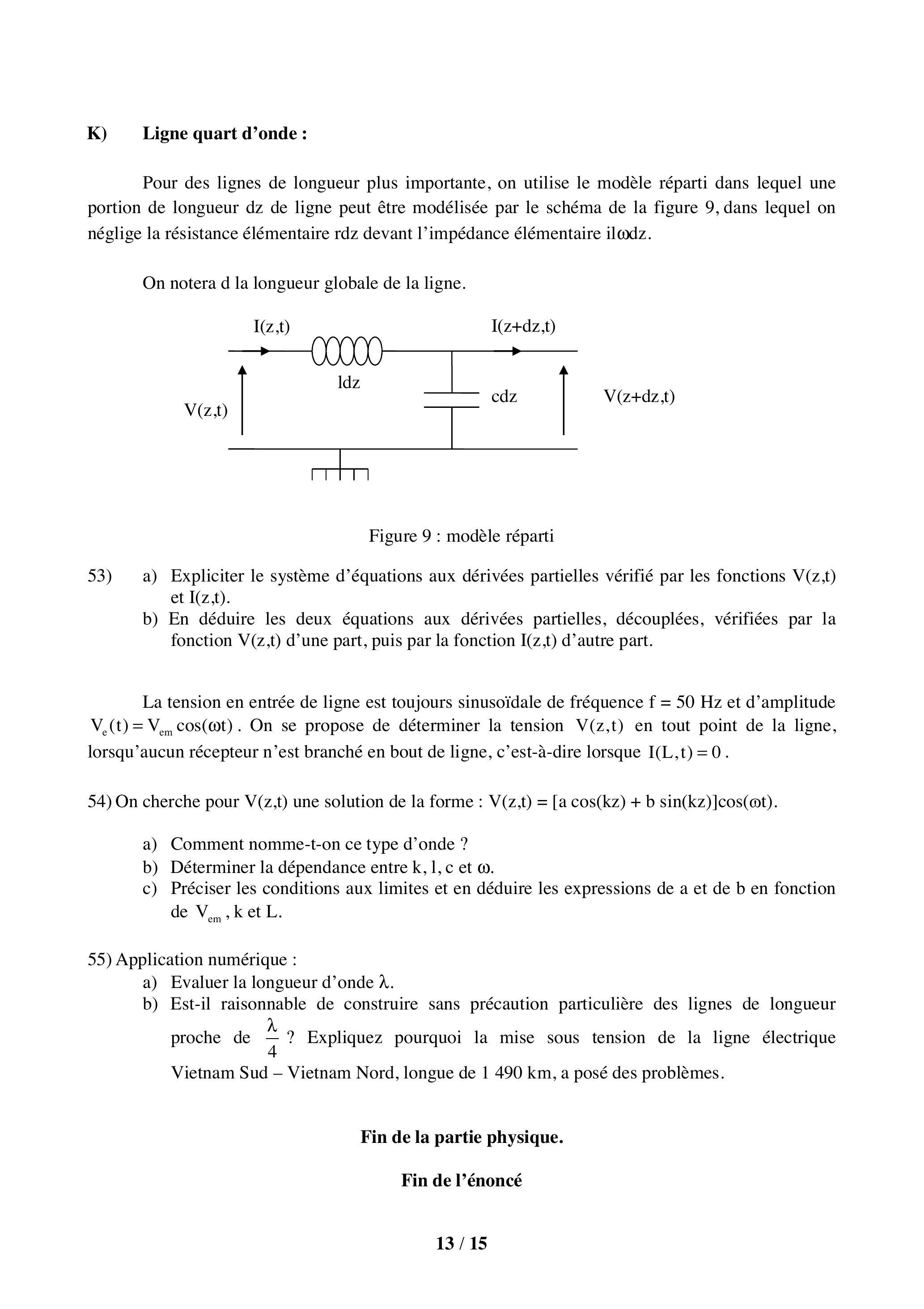 a) Expliciter le système d'équations aux dérivées partielles vérifié par les fonctions et I(z,t).