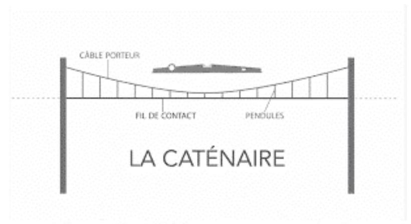 La caténaire est constituée d'un câble de cuivre pur, tendu et soutenu par un câble porteur (figure 3).