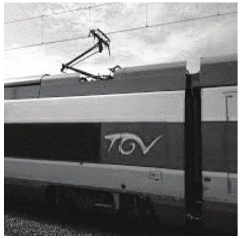 Les motrices électriques circulent sur des voies parfaitement définies par les rails. L'approvisionnement en énergie électrique peut être satisfait, à la demande, au moyen d'un dispositif du type caténaire-pantographe. Les pantographes, doublés d'archets en carbone, assurent la jonction électrique entre la motrice et la caténaire (figure 2).