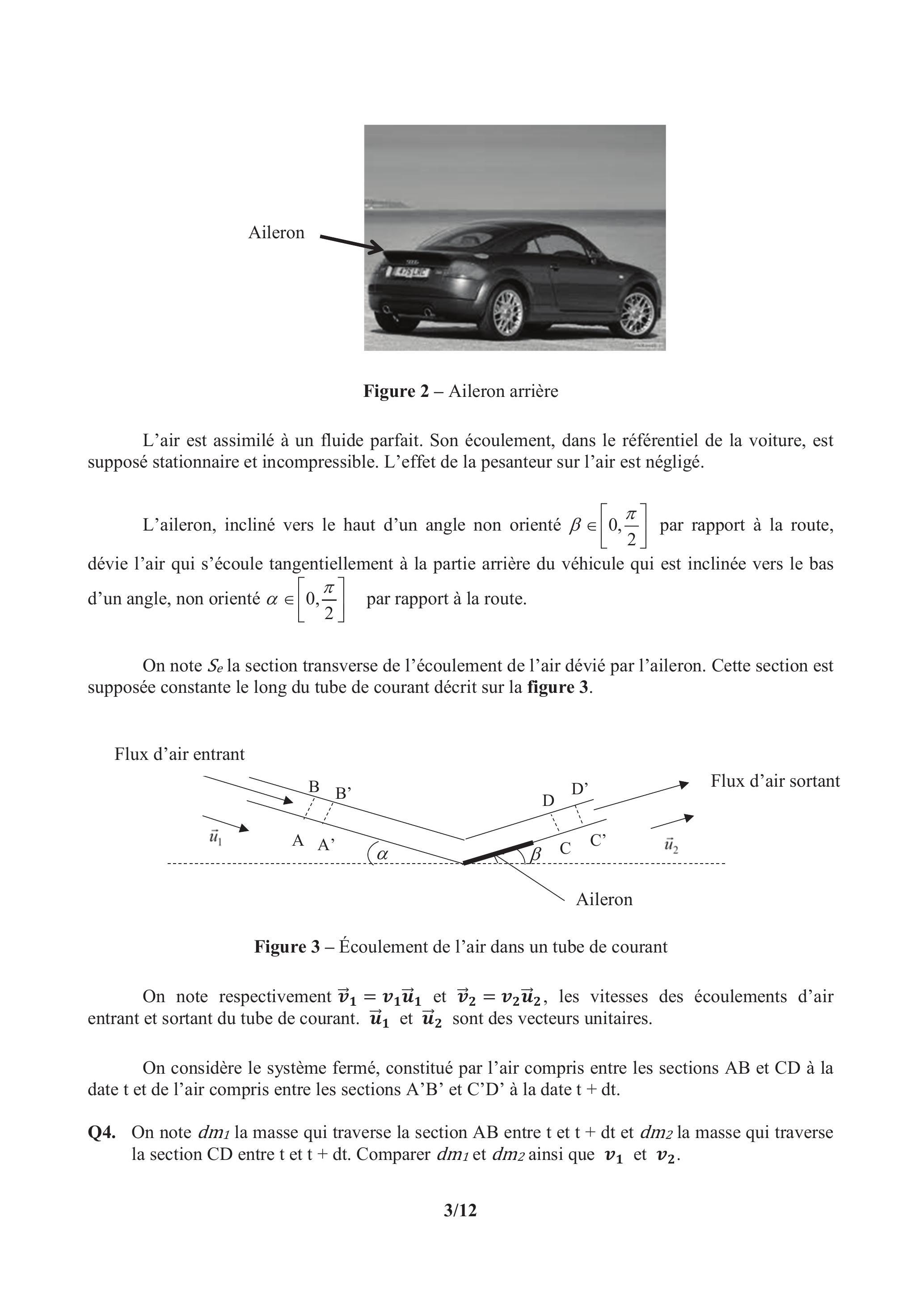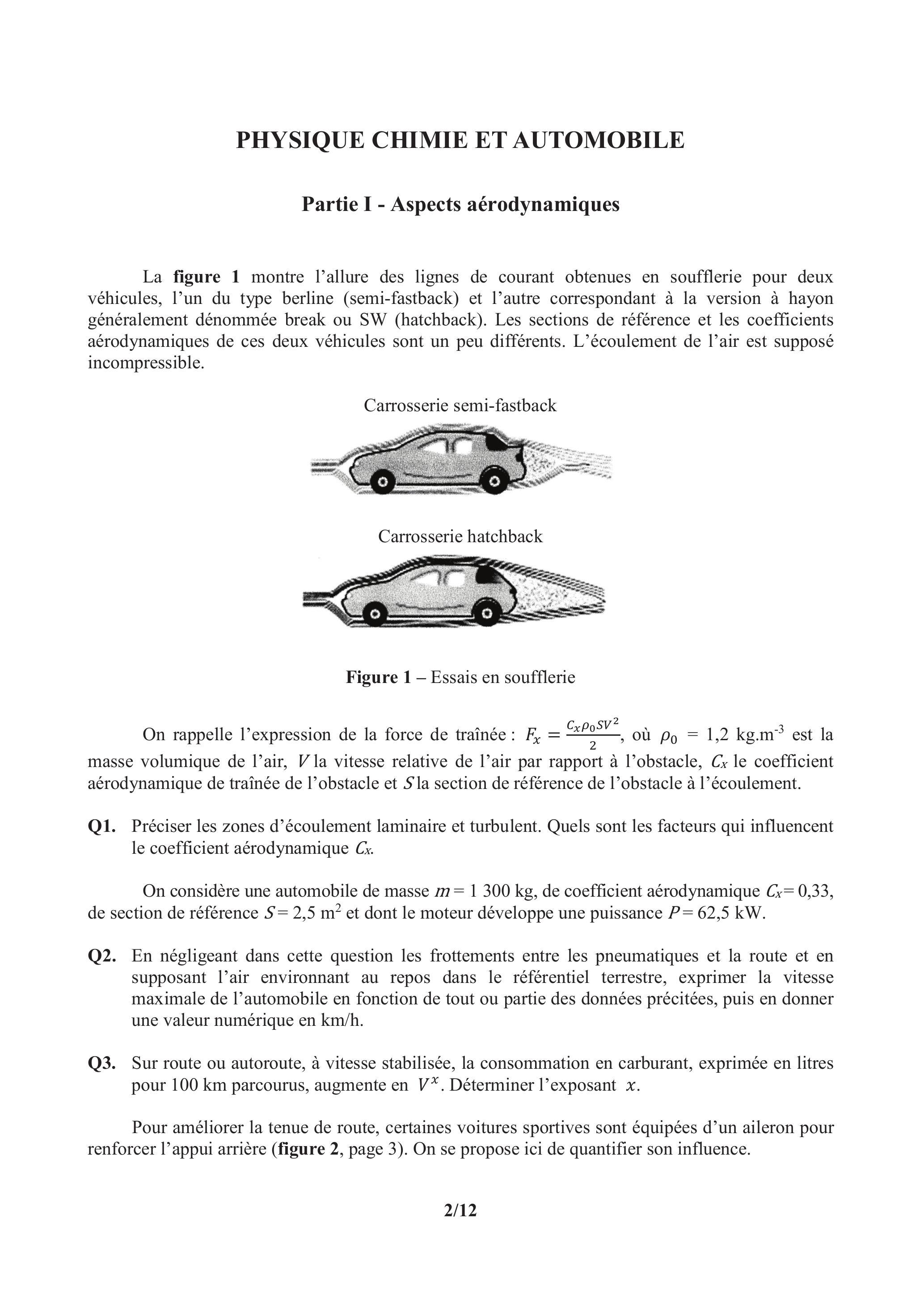 Pour améliorer la tenue de route, certaines voitures sportives sont équipées d'un aileron pour renforcer l'appui arrière (figure 2, page 3). On se propose ici de quantifier son influence.