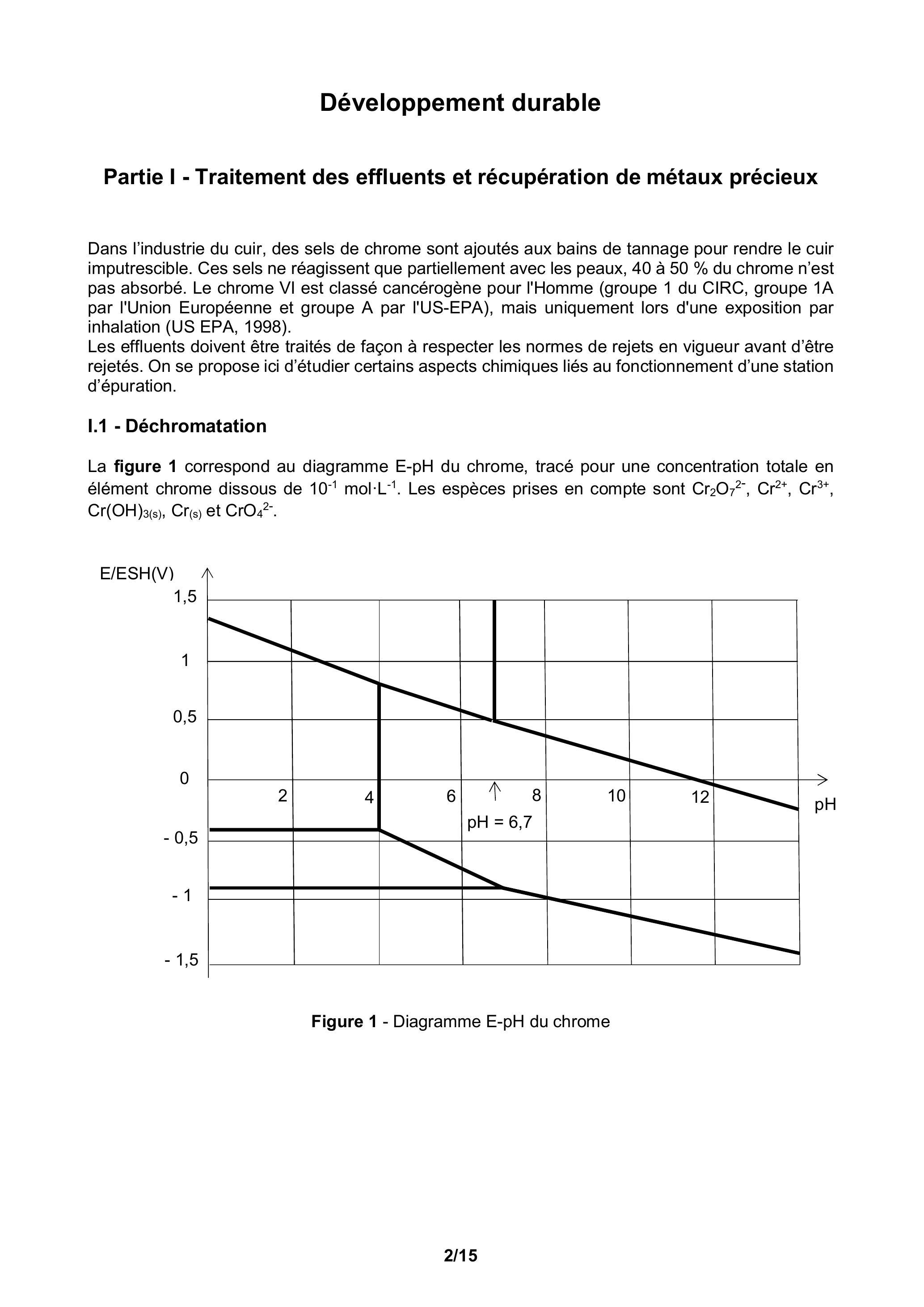 La figure 1 correspond au diagramme E-pH du chrome, tracé pour une concentration totale en élément chrome dissous de
