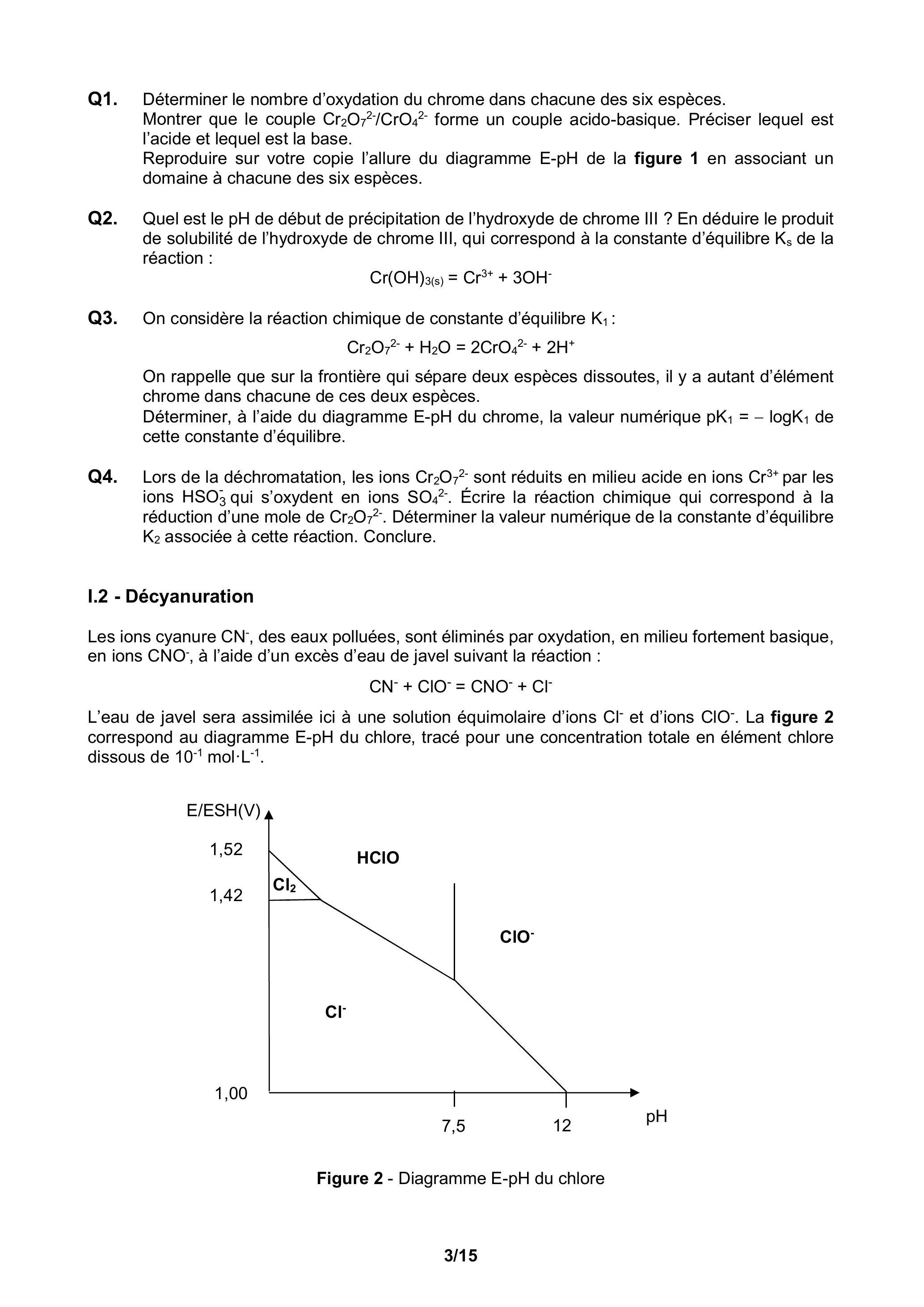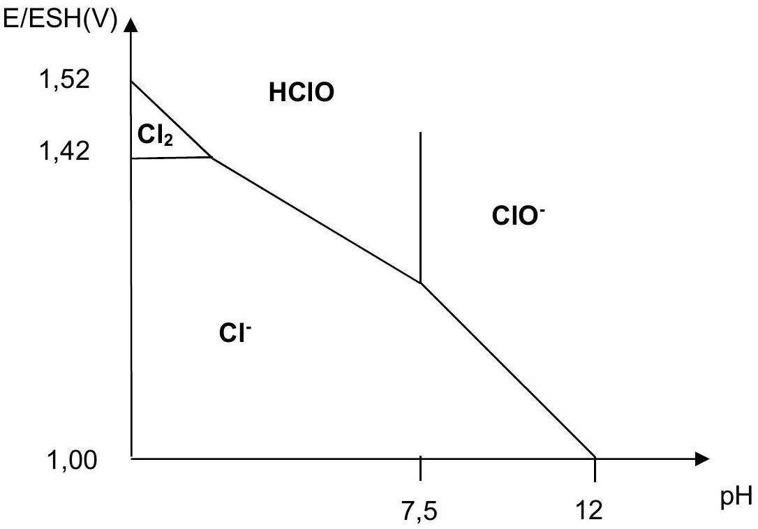 . La figure 2 correspond au diagramme E -pH du chlore, tracé pour une concentration totale en élément chlore dissous de