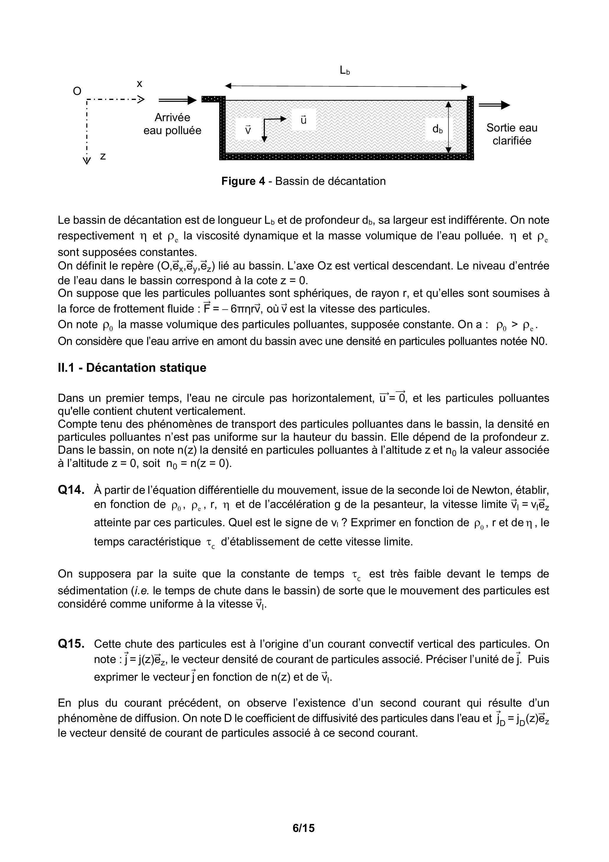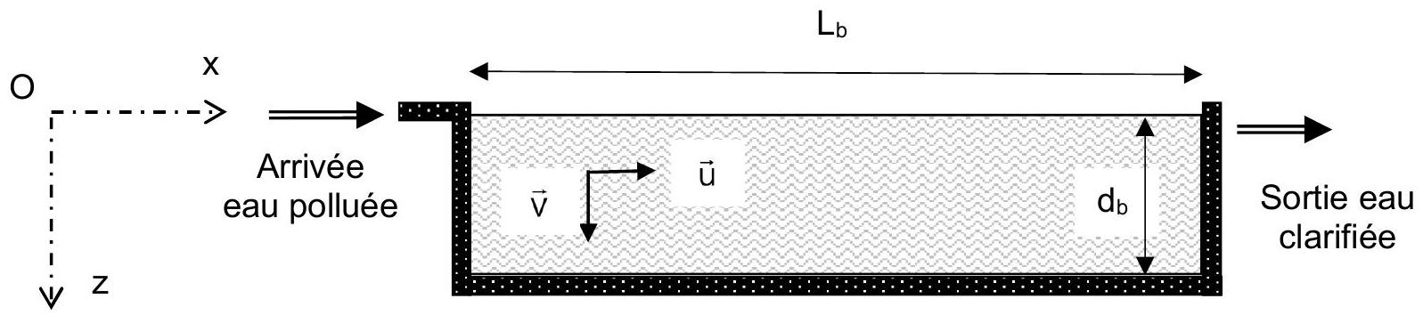 L'eau polluée, c'est-à-dire chargée en particules non désirées, circule en continu dans le bassin de décantation (figure 4), à faible vitesse horizontale