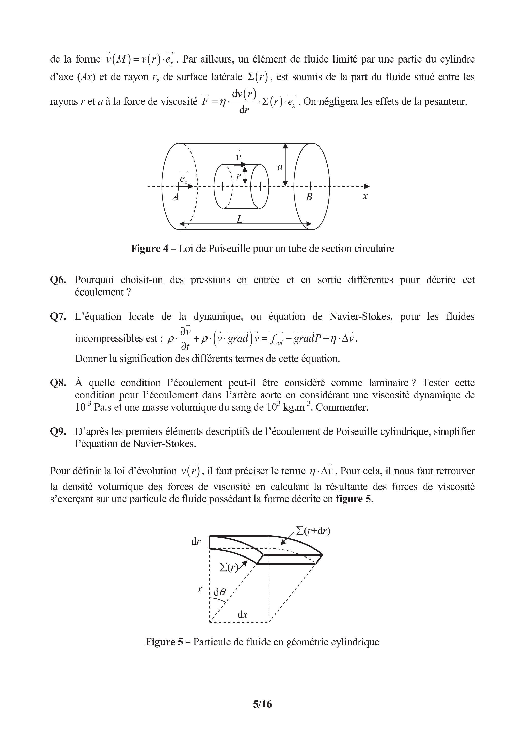 Q9. D'après les premiers éléments descriptifs de l'écoulement de Poiseuille cylindrique, simplifier l'équation de Navier-Stokes.