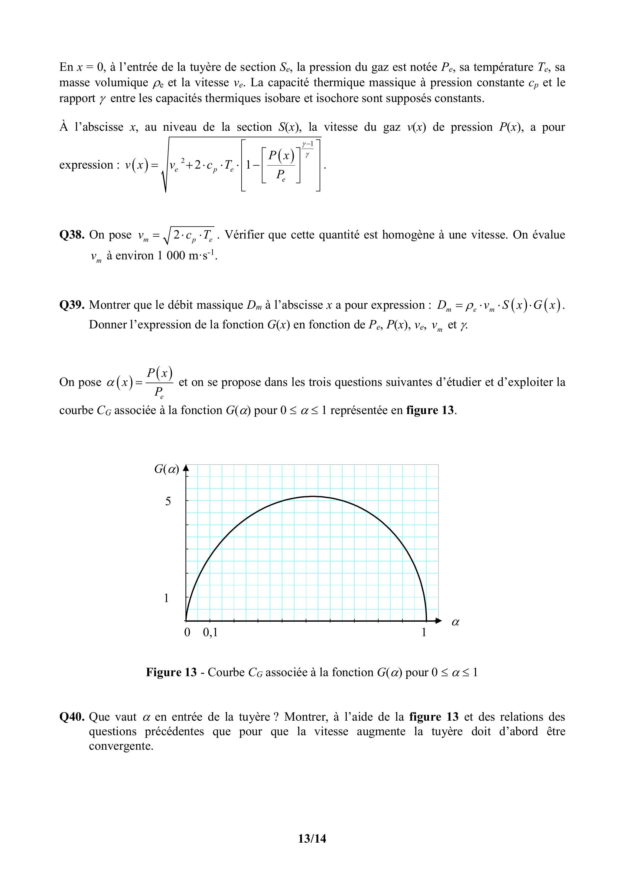 Q40. Que vaut en entrée de la tuyère ? Montrer, à l'aide de la figure 13 et des relations des questions précédentes que pour que la vitesse augmente la tuyère doit d'abord être convergente.