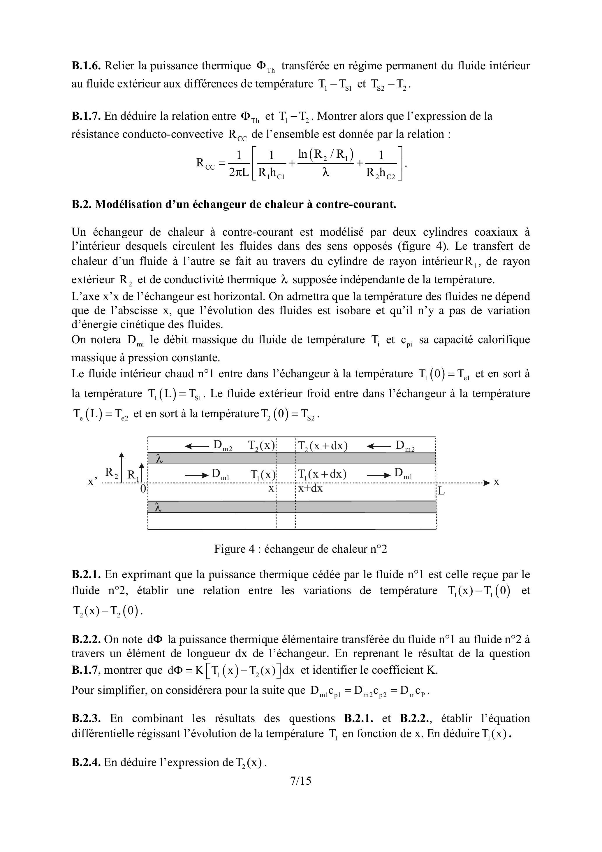 B.2.2. On note la puissance thermique élémentaire transférée du fluide au fluide à travers un élément de longueur dx de l'échangeur. En reprenant le résultat de la question B.1.7, montrer que et identifier le coefficient .