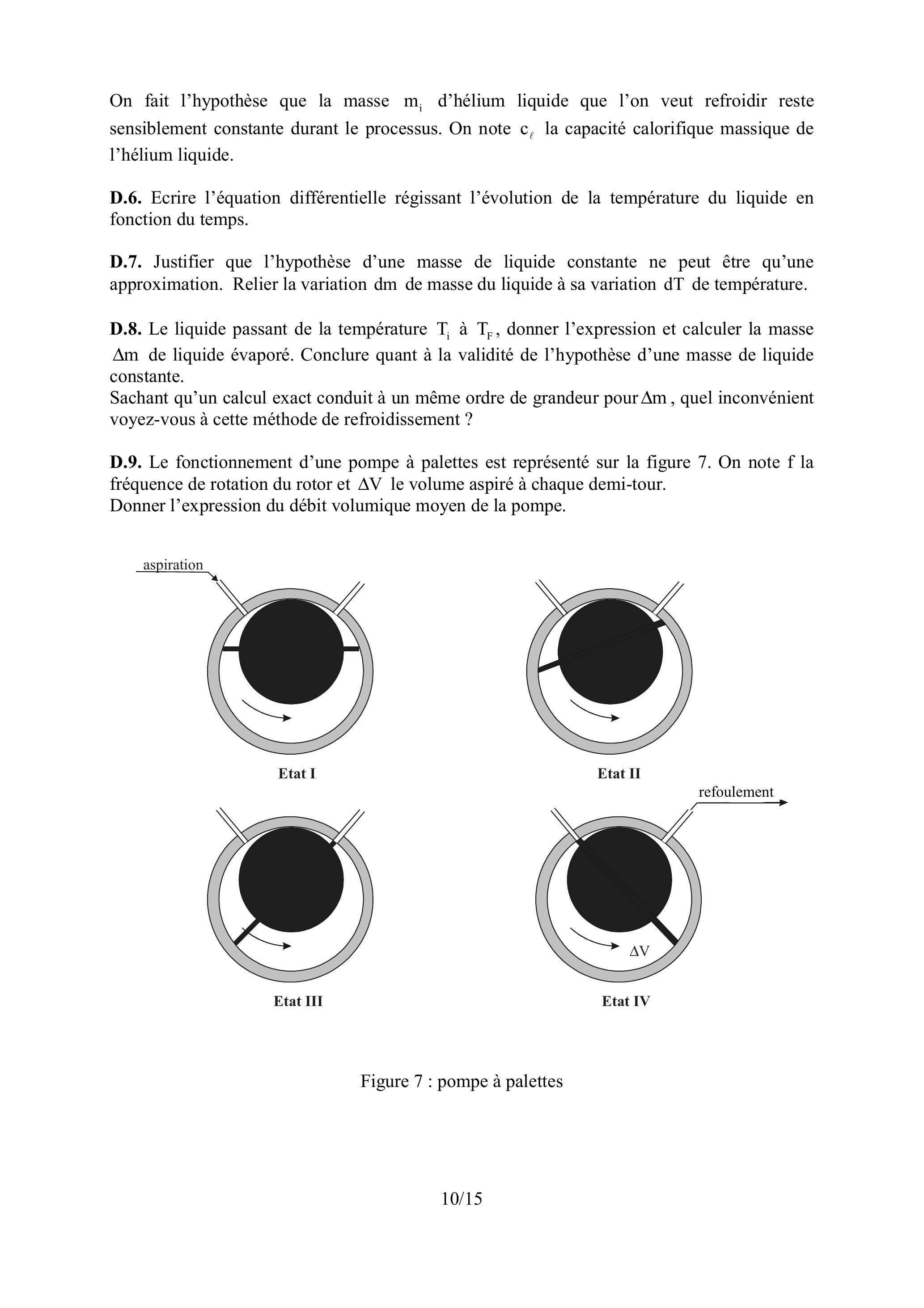 On cherche à refroidir l'hélium liquide de la température de à la température de . Cette température est celle à laquelle doivent être maintenus les aimants supraconducteurs en niobium-titane du LHC. Nous allons étudier dans cette partie une façon usuelle de procéder, mais également faire apparaître un défaut de la méthode.
