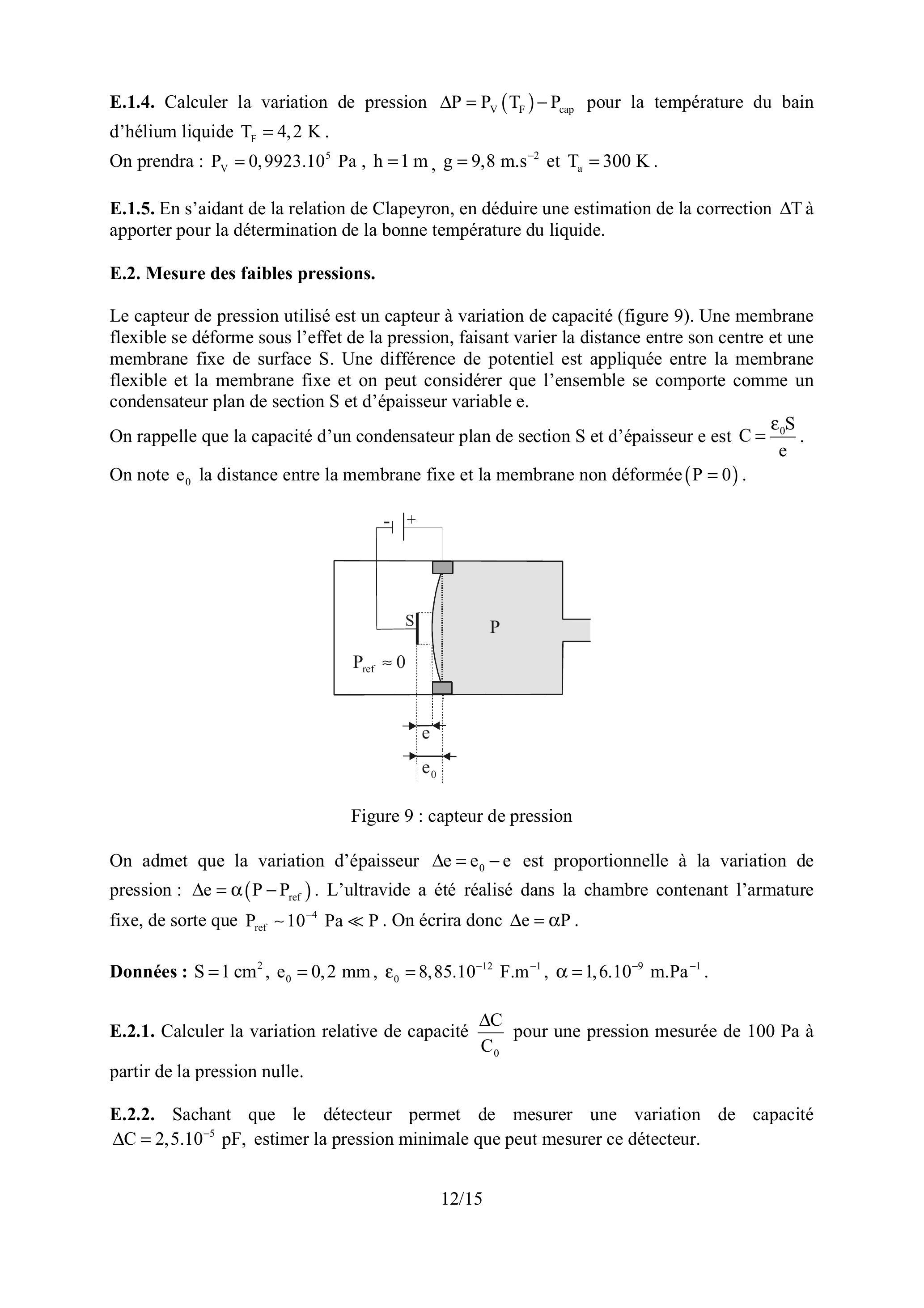 E.2.2. Sachant que le détecteur permet de mesurer une variation de capacité , estimer la pression minimale que peut mesurer ce détecteur.