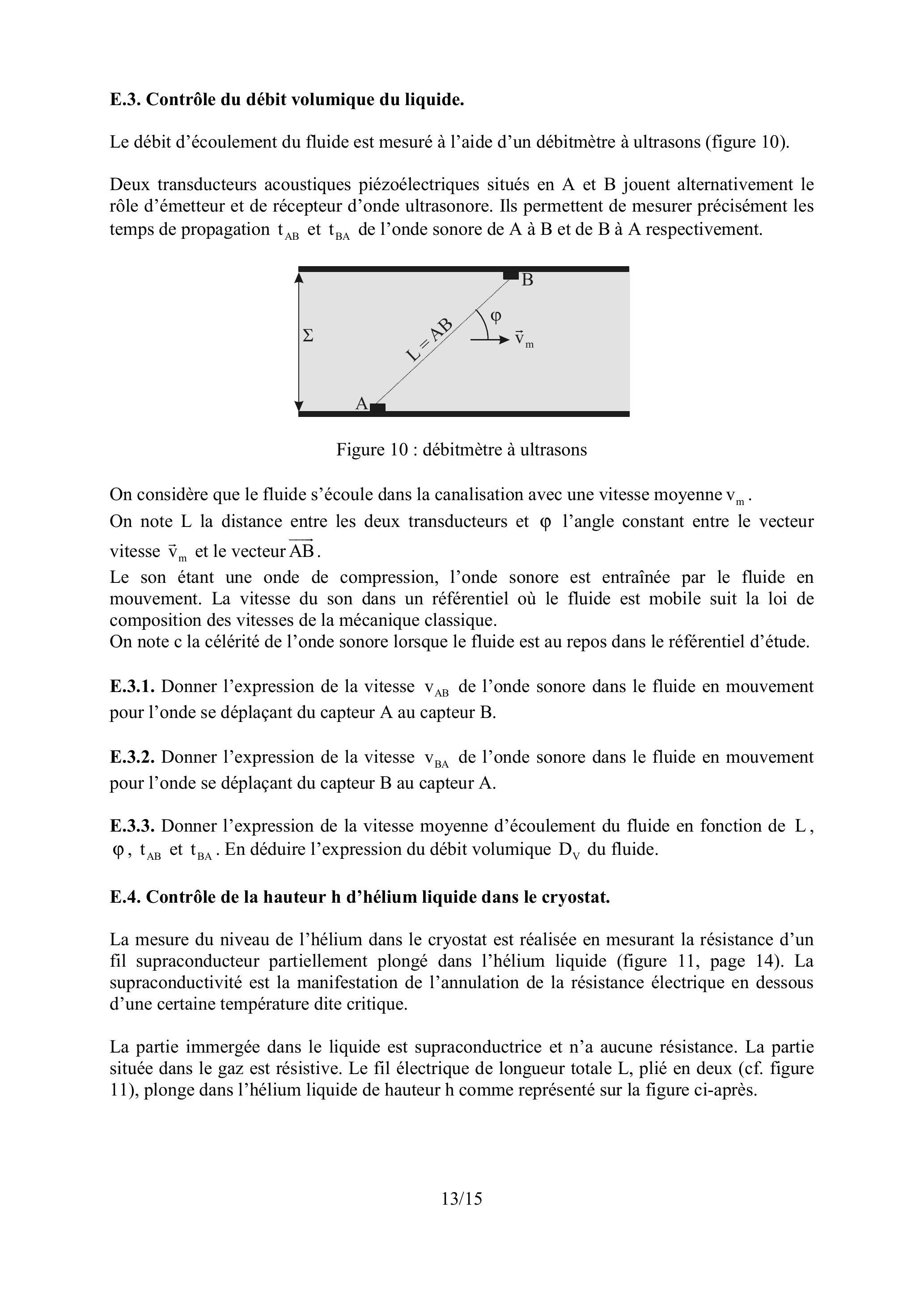 Deux transducteurs acoustiques piézoélectriques situés en A et B jouent alternativement le rôle d'émetteur et de récepteur d'onde ultrasonore. Ils permettent de mesurer précisément les temps de propagation et de l'onde sonore de à et de à respectivement.