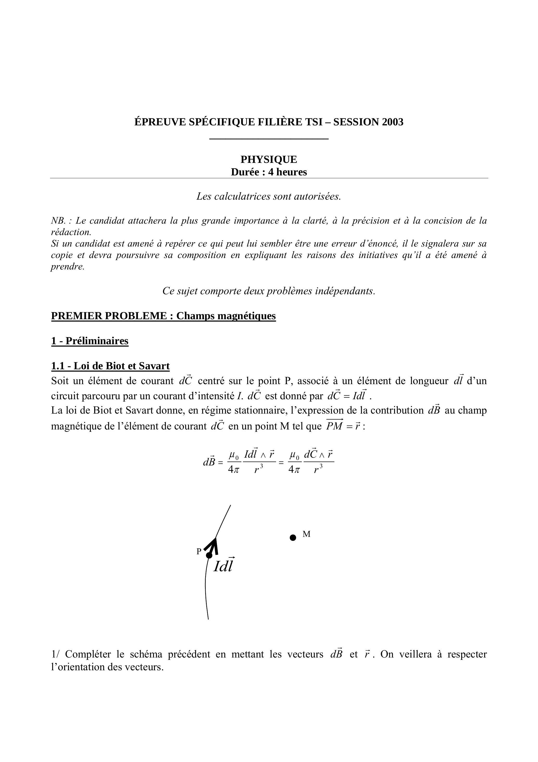 PREMIER PROBLEME: Champs magnétiques