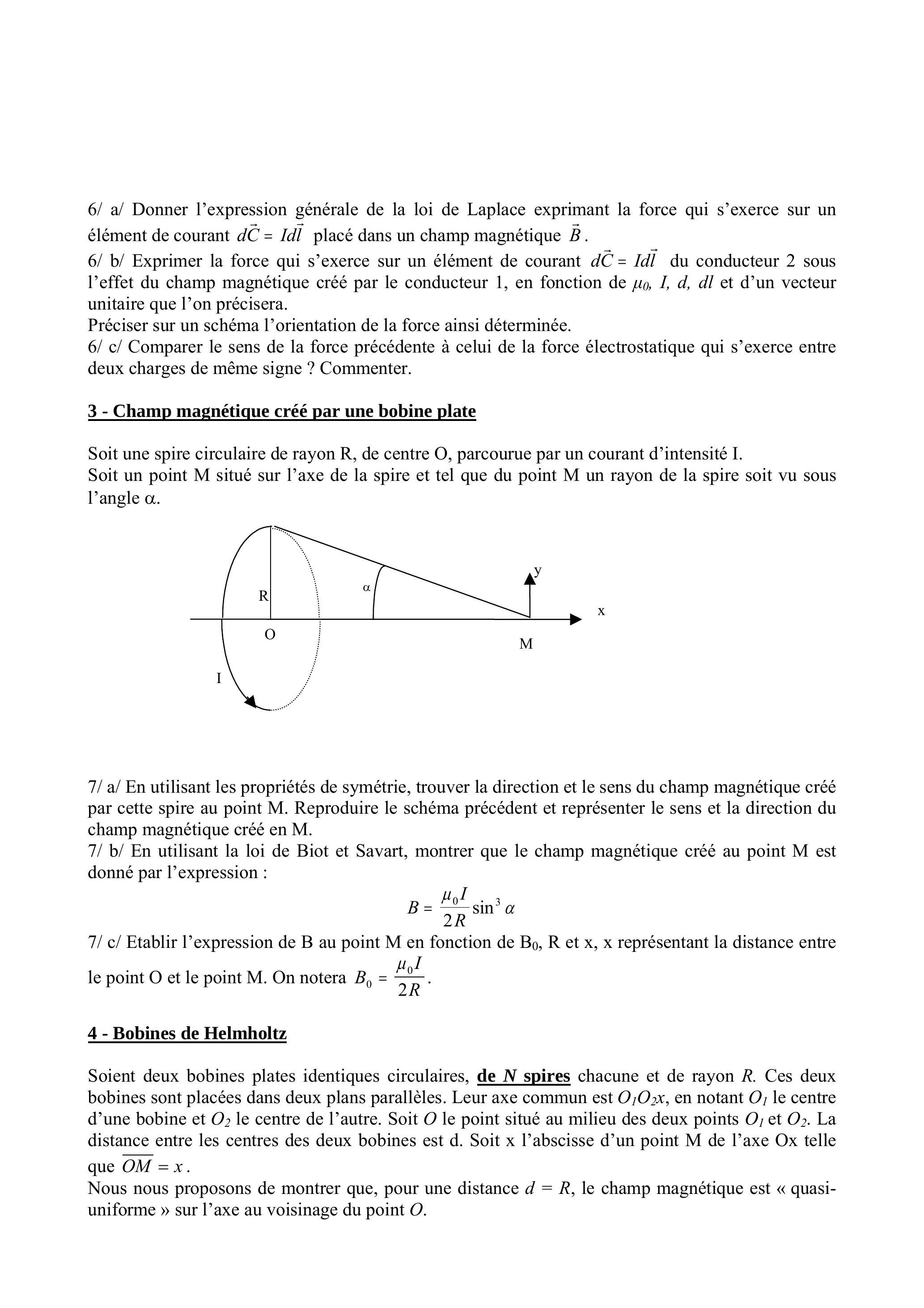 7/ b/ En utilisant la loi de Biot et Savart, montrer que le champ magnétique créé au point M est donné par l'expression :