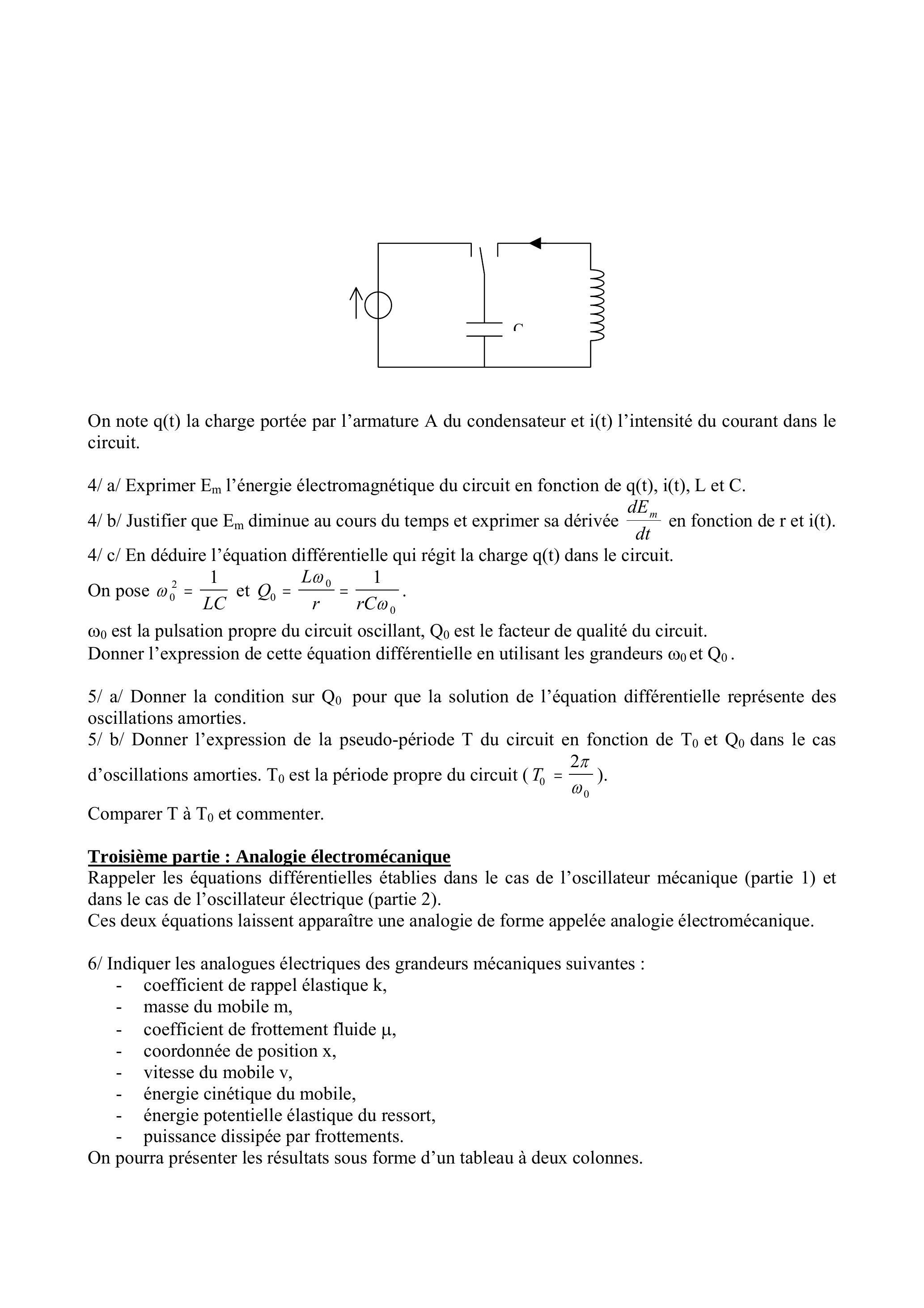 4/ Exprimer l'énergie électromagnétique du circuit en fonction de et C .