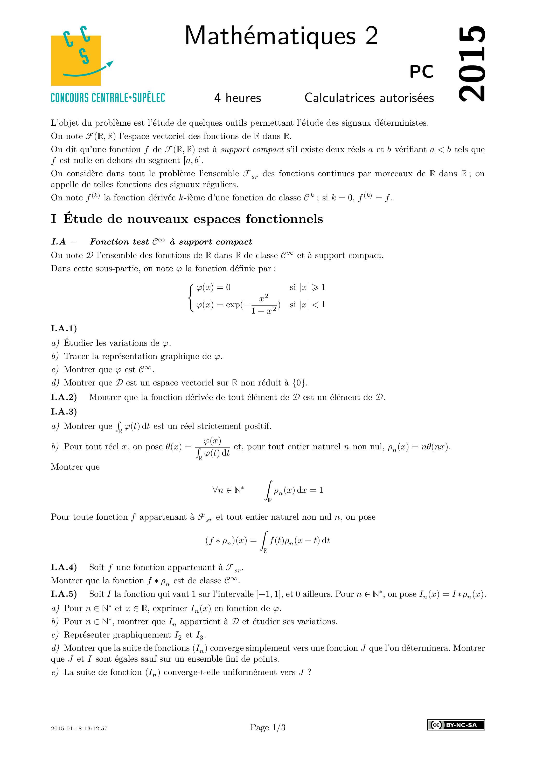 Centrale Mathématiques 2 PC 2015 - Version Web LaTeX | WikiPrépa | WikiPrépa
