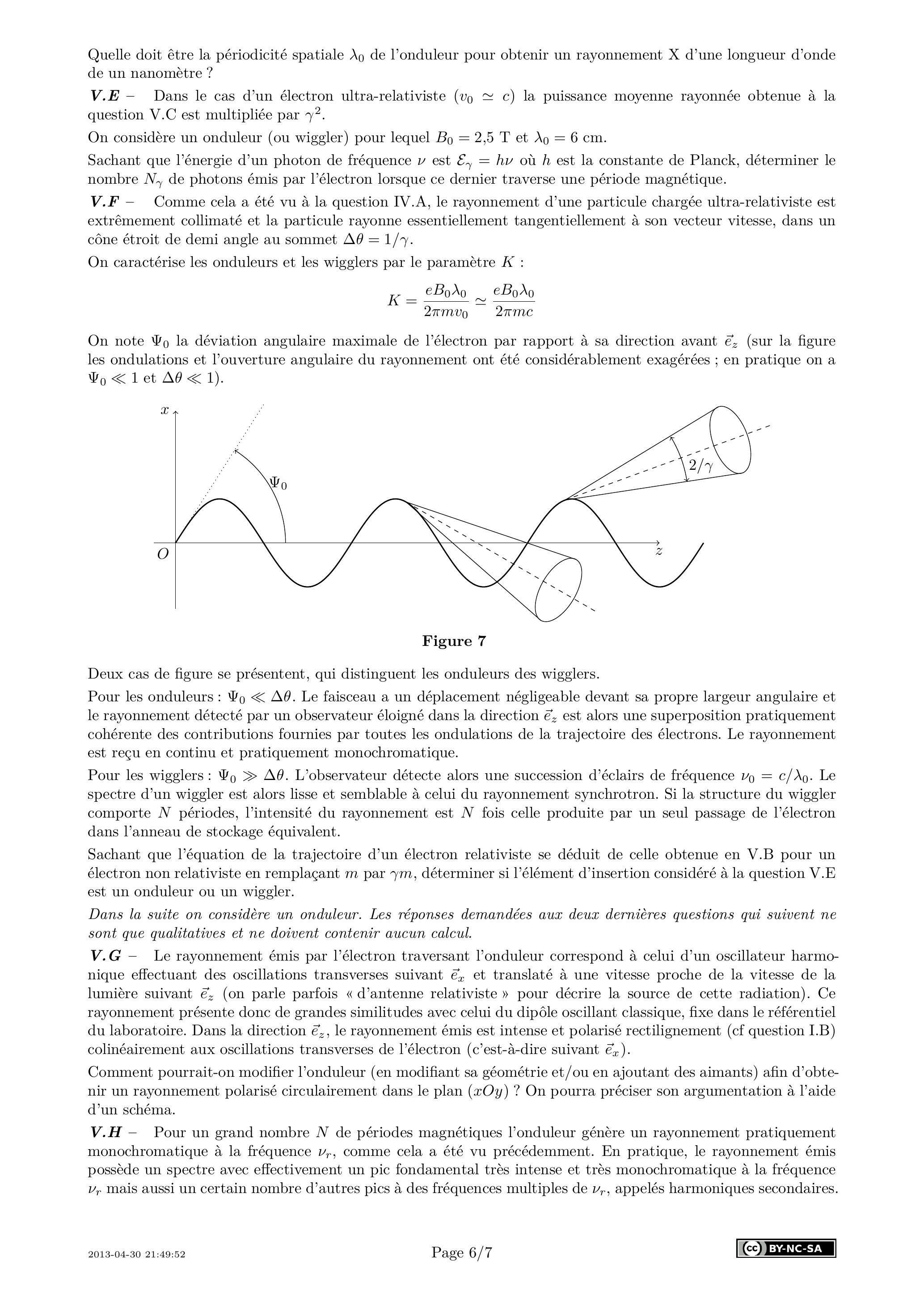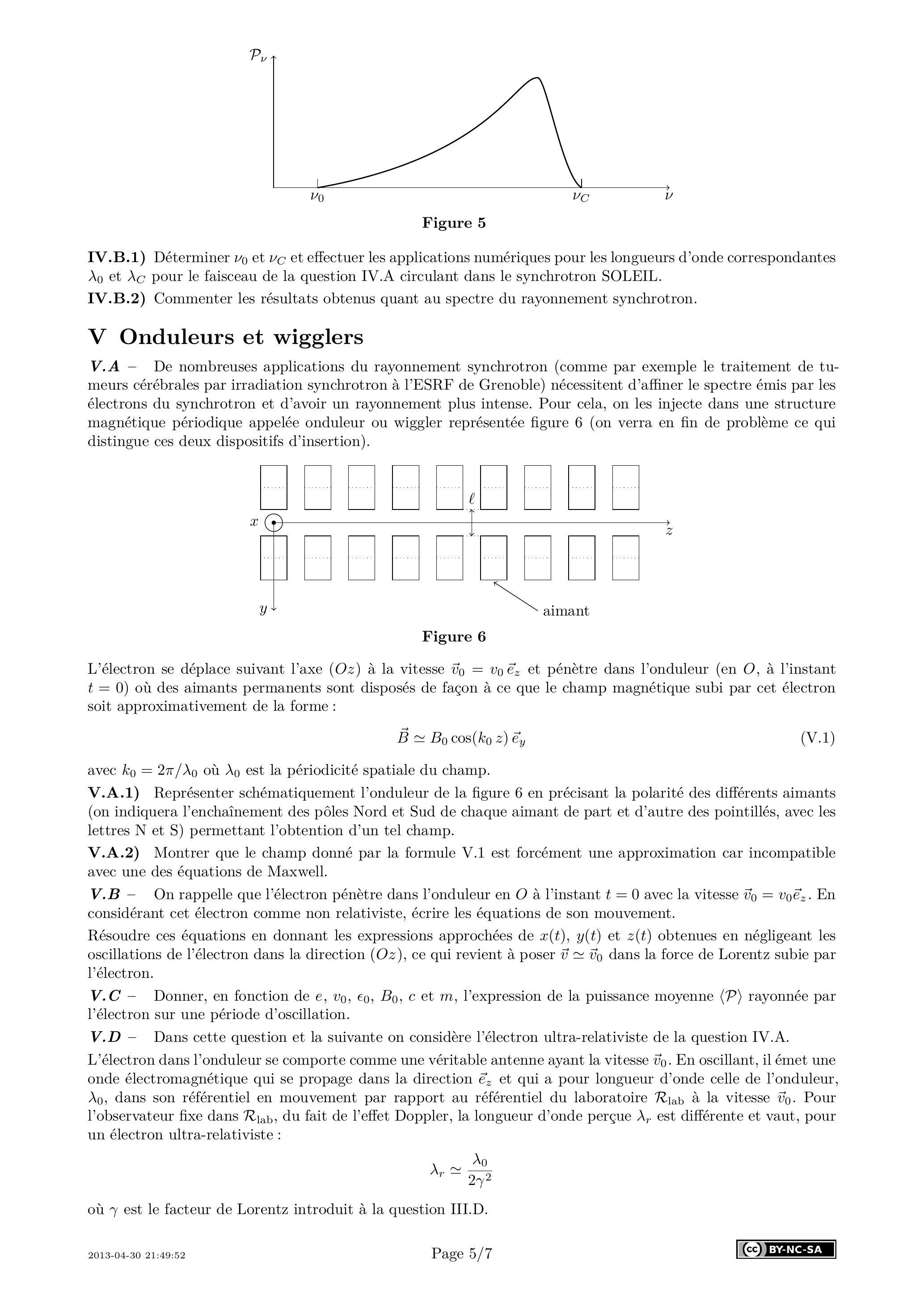 Quelle doit être la périodicité spatiale de l'onduleur pour obtenir un rayonnement X d'une longueur d'onde de un nanomètre? - Dans le cas d'un électron ultra-relativiste ( ) la puissance moyenne rayonnée obtenue à la question V.C est multipliée par .