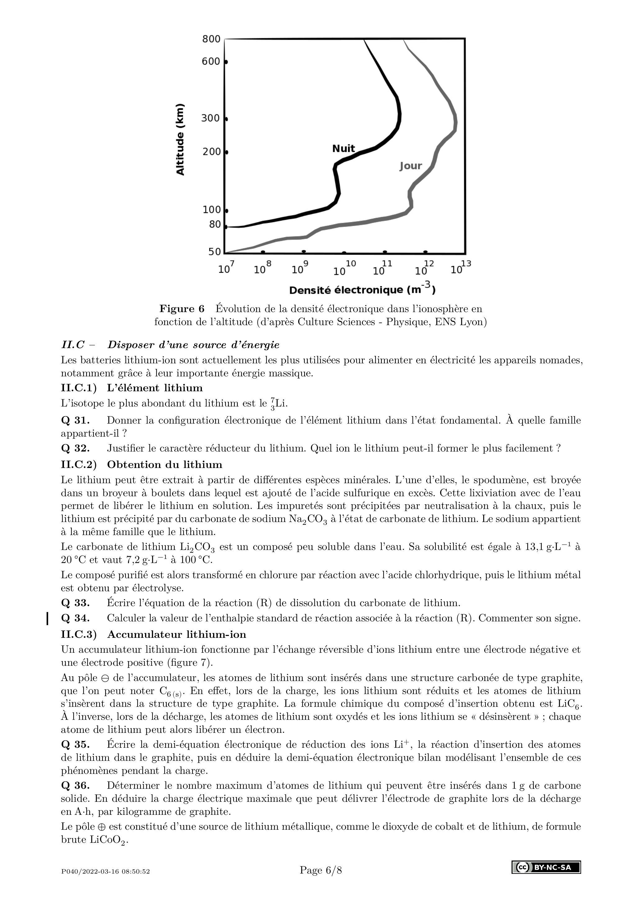 Q 32. Justifier le caractère réducteur du lithium. Quel ion le lithium peut-il former le plus facilement ?