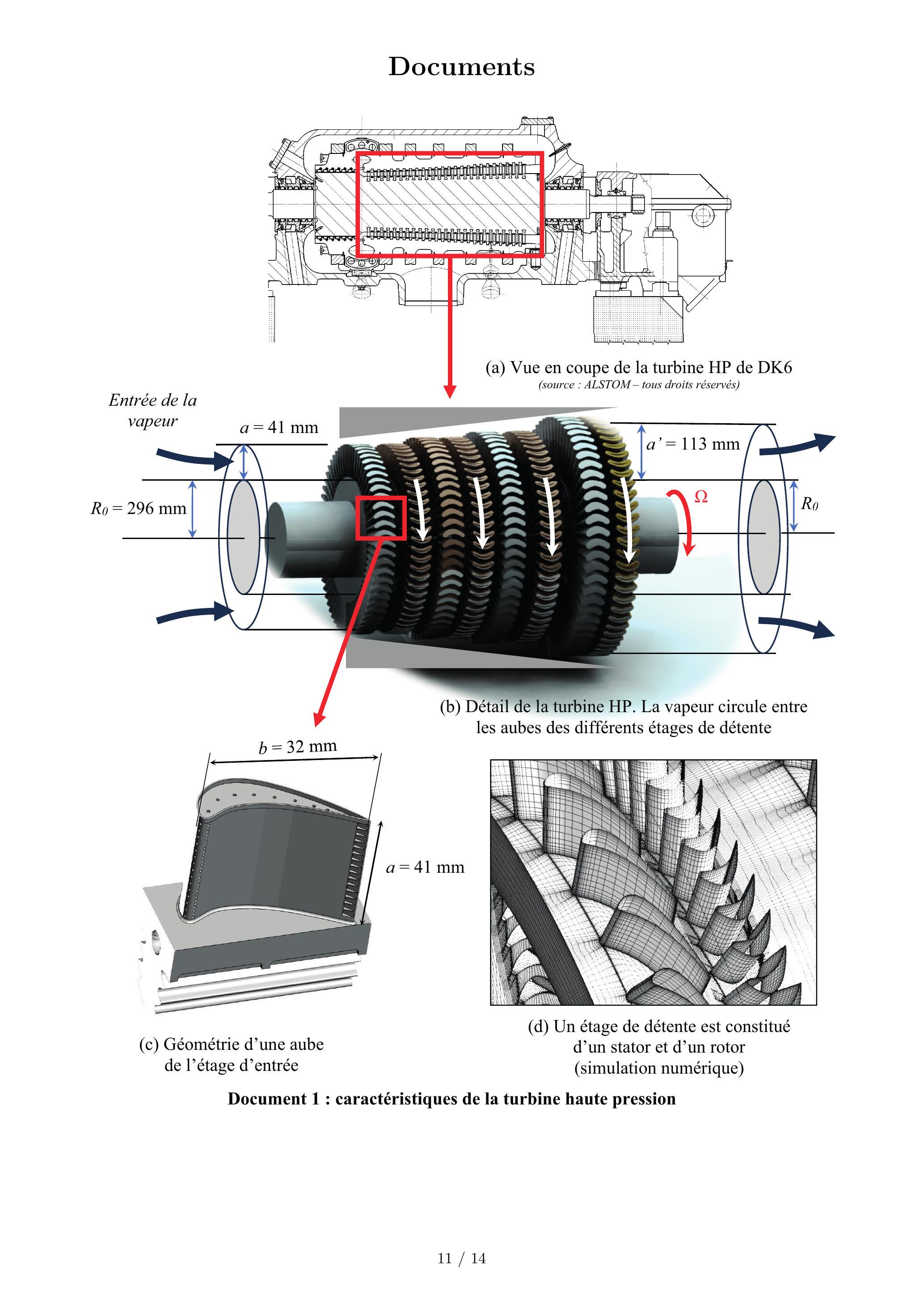 La vapeur entre dans un premier temps dans la turbine haute pression, dont les caractéristiques géométriques sont précisées sur le document 1, en fin de sujet.